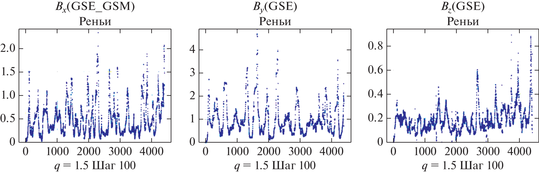 Обсуждаются результаты информационного анализа временных рядов спутникового мониторинга состояния межпланетного магнитного поля, предоставляемые базой данных Центра космических полетов Годдарда (англ. NASA Goddard Space Flight Center). В арсенале методов анализа основное внимание отводится контролю неэкстенсивных свойств при масштабировании временных выборок, создаваемых на основе временных рядов 2001–2022 гг. Демонстрируется перестройка модальности функции распределения вероятности для компонент межпланетного магнитного поля в рассматриваемом ансамбле реализаций. Представлены результаты реконструкции кинетики энтропийных мер Шеннона–Больцмана–Гиббса, Тсаллиса и Реньи. В неэкстенсивном приближении анализируется влияние q-деформации фазового пространства на стохастические режимы исследуемой системы. В работе впервые совместно исследуются кинетика информационного расхождения и кинетика энтропийных мер ансамбля реализаций значений межпланетного магнитного поля. Указывается необходимость согласования q-параметров деформации фазового пространства, опорной и контролируемой подсистем, в том числе, при использовании асимптотических приближений в методиках прогноза с применением нейросетевых алгоритмов и алгоритмов глубокого обучения.