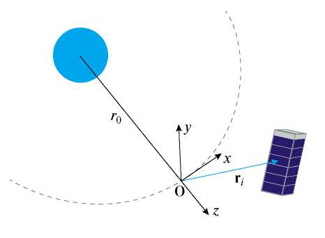 Уравнения справедливы для малых относительных расстояний, поэтому расстояние между i-м МКА и точкой O должно быть на несколько порядков меньше r0. Система линейных дифференциальных уравнений (1), описывающая движение i-го МКА, имеет следующее решение: