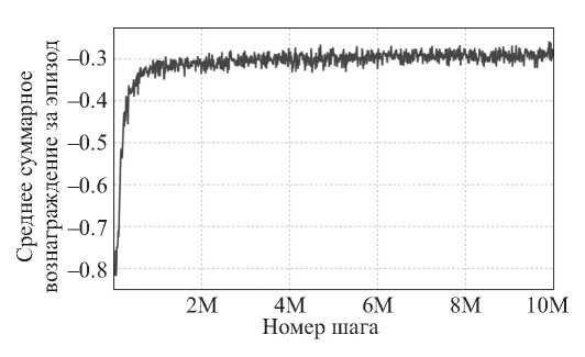 Рис. 5. Среднее вознаграждение за эпизод в зависимости от шага.
