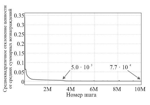 Рис. 6. Среднеквадратичное отклонение модели функции ценности от средних суммарных вознаграждений.