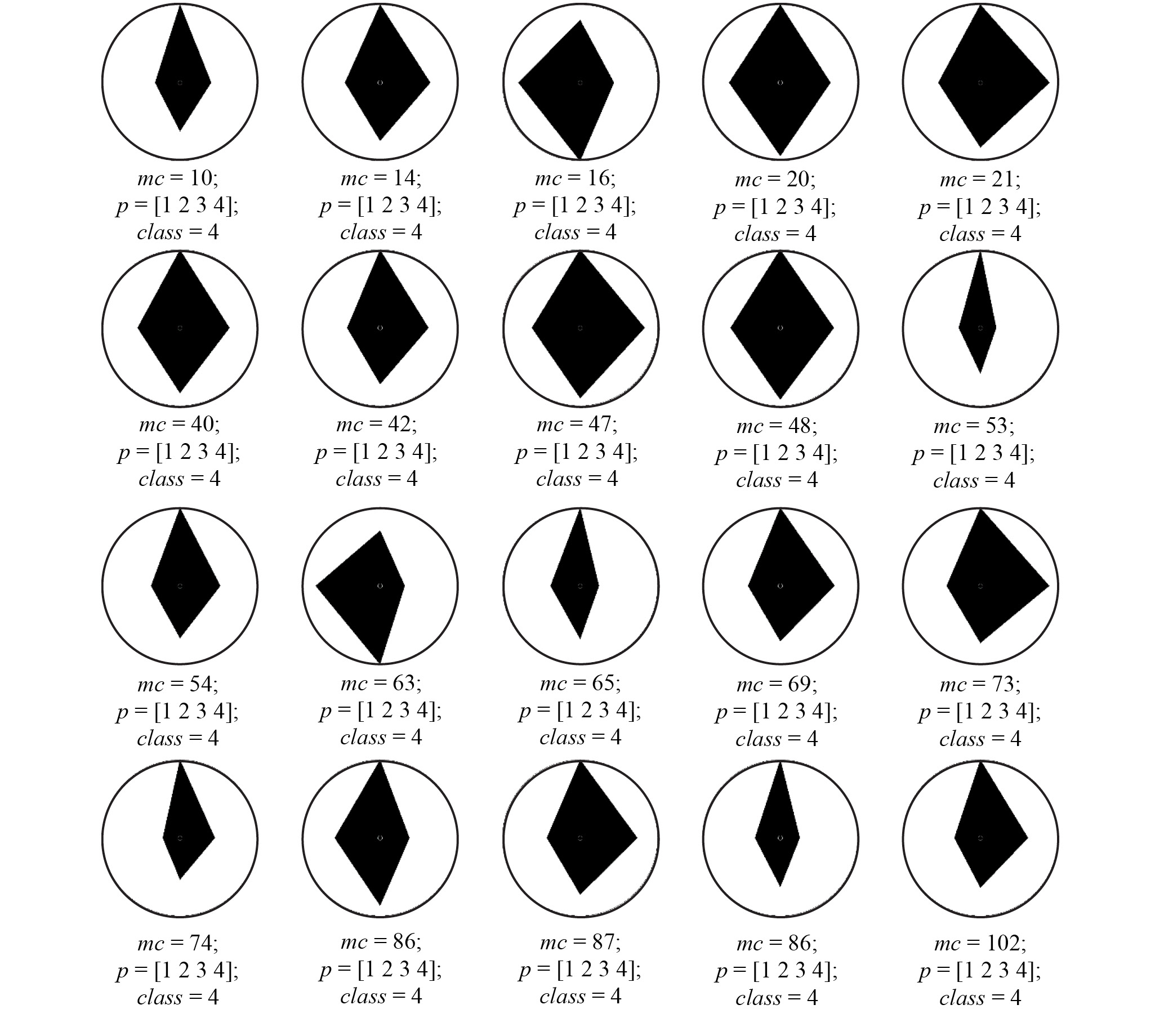 Визуальный осмотр результатов классифицирования в виде групп многоугольников (рис. 4–8) согласуется с выводами, предлагаемыми ИНС. Анализ полученных данных позволяет сформулировать следующие особенности полученных классов.