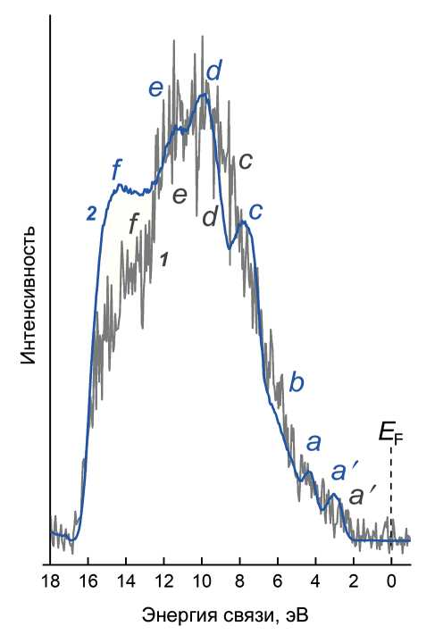 В УФ ФЭ-спектре [Cu(Salen)] в области низких Ebin наблюдаются полосы фотоэмиссии a' и a при 3.0 и 4.3 эВ, а также интенсивный подъем сигнала в области 4.8–6.5 эВ (полоса b). Ранее при сравнении спектров валентной эмиссии H2(Salen) и [Ni(Salen)] наблюдаемая полоса фотоэмиссии a' в спектре была приписана ВЗМО, образованной атомными С2pπ-орбиталями фенильных групп саленового лиганда [14]. В случае спектра комплекса [Cu(Salen)] положение этой полосы смещено на ~0.6 эВ в сторону высоких Ebin относительно H2(Salen) и она более интенсивная, что, по-видимому, отражает возможный дополнительный вклад в ВЗМО атомной Cu3d-орбитали π-типа, определяющую полосу фотоэмиссии a'.