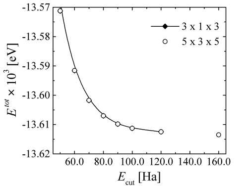 Рис. 3. Зависимость энергии сверхъячейки от максимального значения энергии плоских волн Ecut.