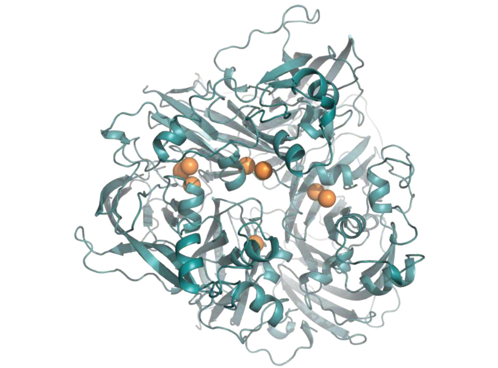 Каталазы катализируют один из самых быстрых ферментативных процессов – разложение перекиси водорода на воду и кислород. Каталазы обнаружены во всех растениях, животных и в большинстве аэробных бактерий, где происходят процессы клеточного дыхания с участием цитохромов, т. е. где в результате восстановления кислорода образуется перекись водорода, токсичная для клетки. Защита клетки от повреждающего действия перекиси водорода – основная функция каталаз. Структуры двух гемовых каталаз (из грибов Penicillum vitale и из микроорганизма Micrococcus lysodeikticus) первоначально были установлены при разрешении 3 Å, а позже уточнены при разрешении 2 и 1.5 Å [17–18].
