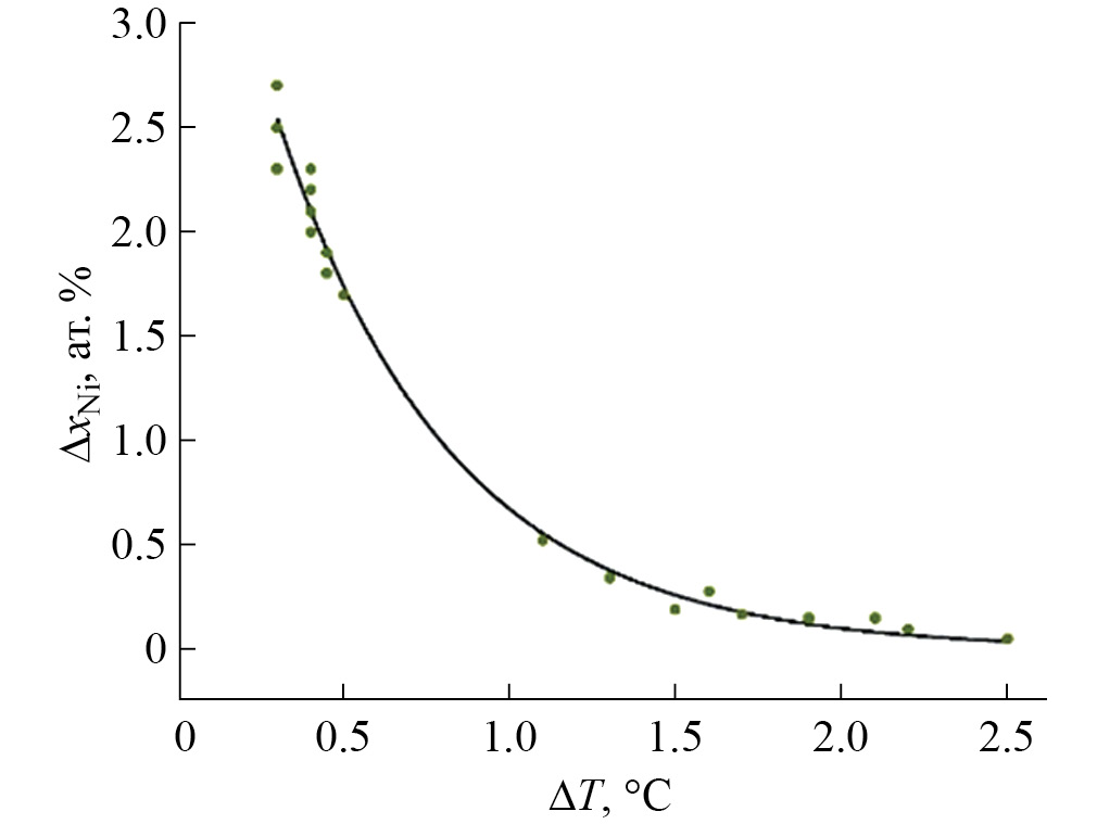 где x0 – концентрация одного из компонентов в кристалле, находящемся в равновесии с данной жидкой фазой, а x – его концентрация в кристалле, состав которого не соответствует равновесным условиям. При любом отклонении состава кристалла от равновесного значения изменение свободной энергии становится больше нуля, что приводит к растворению кристалла (рис. 3).