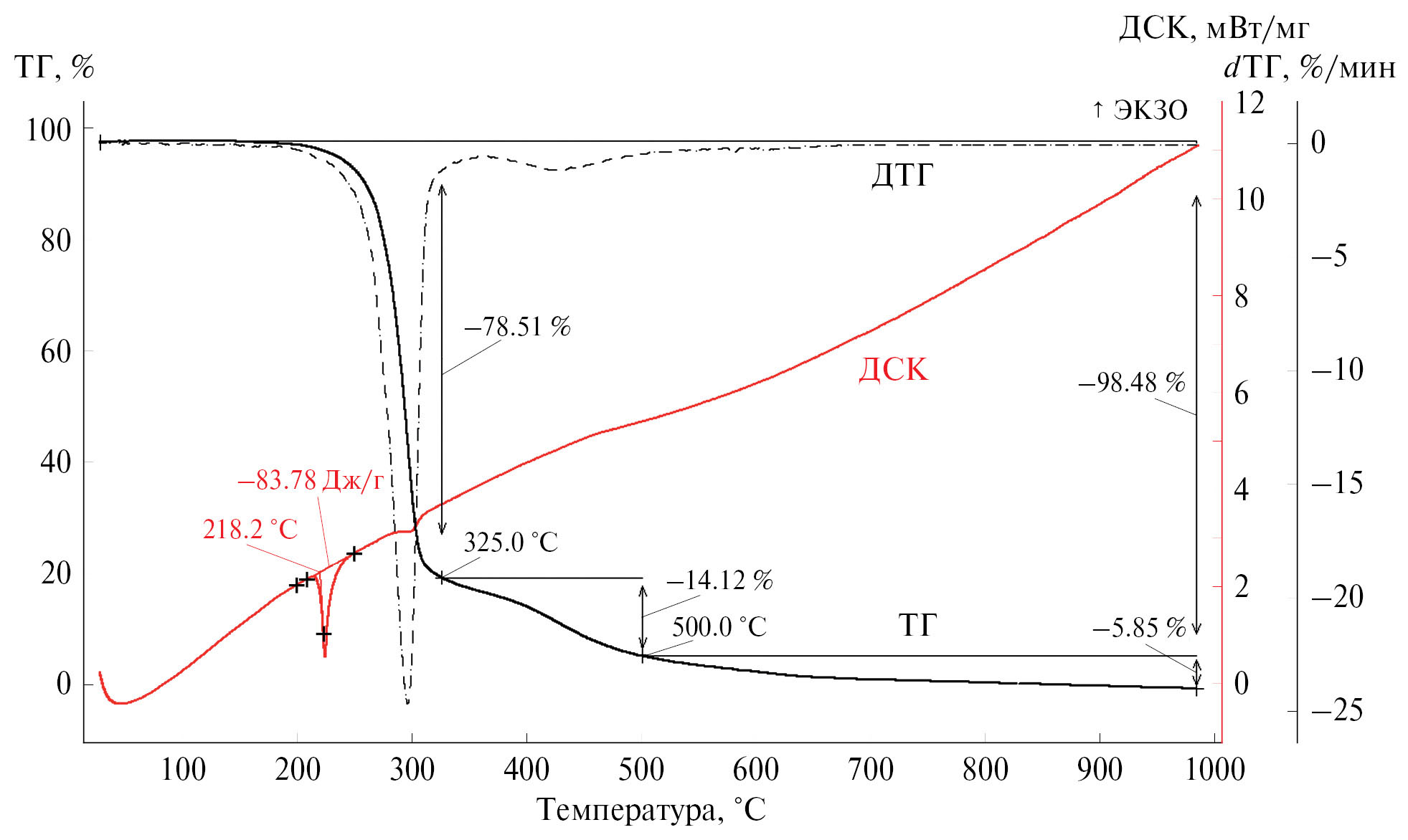 Рис. 3. Термограмма соединения 1.