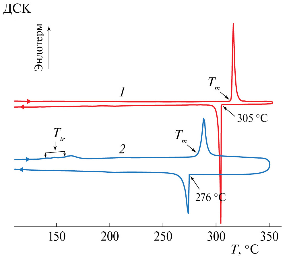 На рис. 1 приведены кривые ДСК исследуемых соединений. Параметры их фазовых переходов приведены в табл. 1.