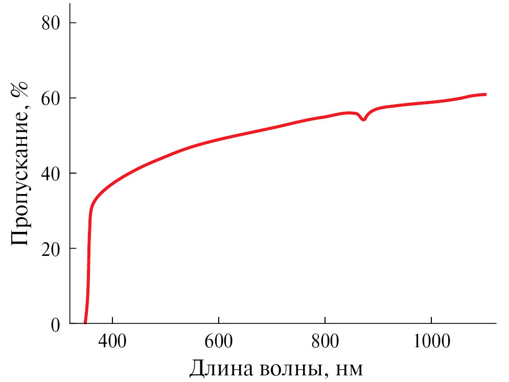 Рис. 3. Спектр пропускания монокристаллического элемента п-терфенила.