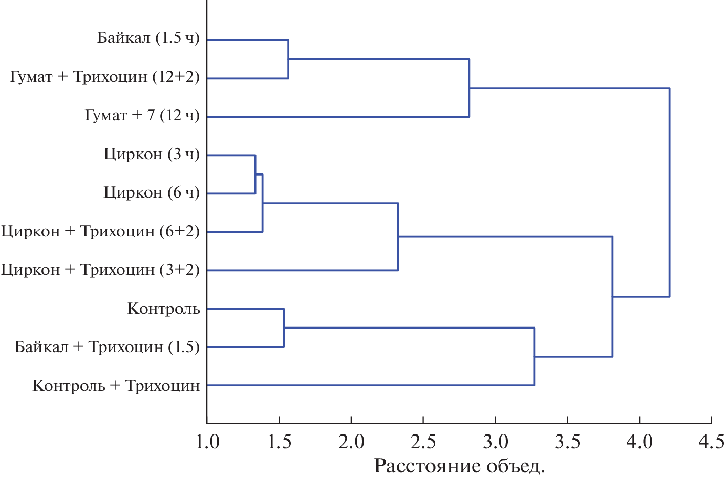 For the cultivation of planting stock of forest-forming species, the measure most often used currently is the pre-sowing treatment of seeds with stimulants, which positively affects the germination of seeds and the growth of seedlings, and for each region of the country the choice of growth substances is different. The aim of the research was to identify the optimal stimulant and soaking time during the pre–sowing treatment of Scots pine seeds (Pinus sylvestris L.). The objects of research were one- and two-year-old seedlings, growing in the forest nursery of the Shaldai branch of the State Forest Natural Reserve (SFNR) “Ertis Ormany” in the Pavlodar region. Three stimulants (Baikal, Zircon, Humate-7 trace substances) and the fungicide Trichocine were tested. The field germination of seeds, the number of plants per unit area and the height of seedlings were all studied. In the experiment with a combined usage of the stimulants and the Trichocine, the average height of pine yearlings was lower than that of control seedlings. But at the age of two years, the average height of seedlings in the two experiments exceeded the height of control seedlings by 20.8 and 1.4%. Thus, the prolonged effect of pre-sowing seed treatment with the stimulants and the Trichocine on enhancing the growth and number of preserved seedlings per unit area at the age of two years has been proven. The data obtained from cluster and rank analyses showed that for the pre-sowing treatment of Scots pine seeds in the conditions of ribbon forests of the Irtysh region, the most optimal way was to soak the seeds in the Humate + 7 micronutrients for 12 hours together with the Trichocine (12 + 2 hours) in a concentration of 1.5 g of the stimulant and 0.6 g of the fungicide per 1 liter of water.