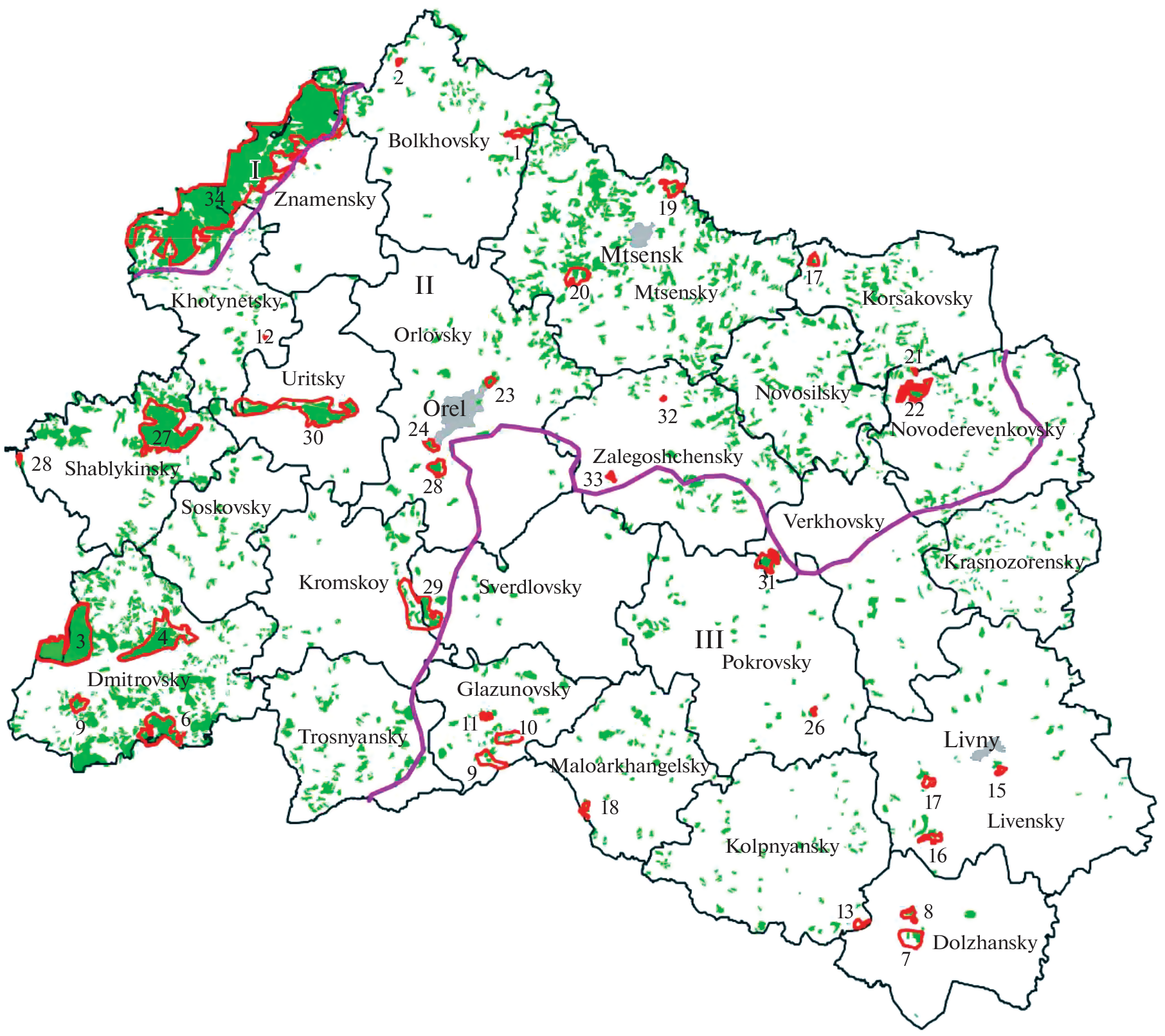 Important Forest Areas of the Orel Region
