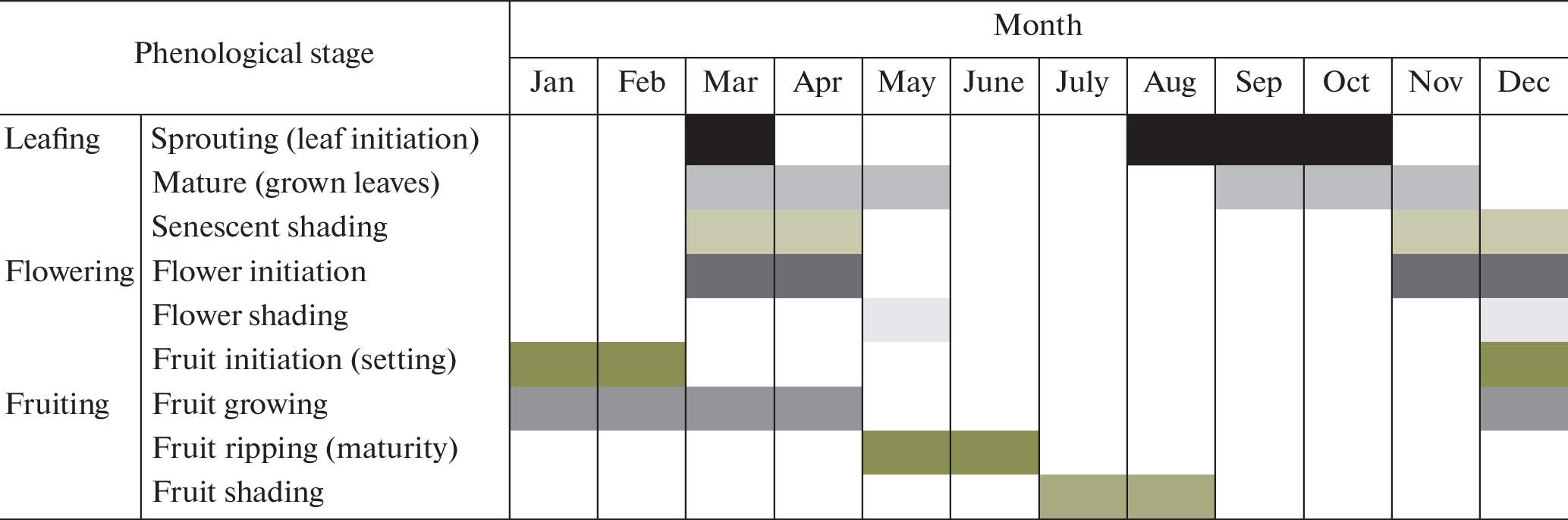Reproductive phenology of Milicia excelsa, Antiaris toxicaria, and Pouteria adolfi-friedericii in South West Ethiopia