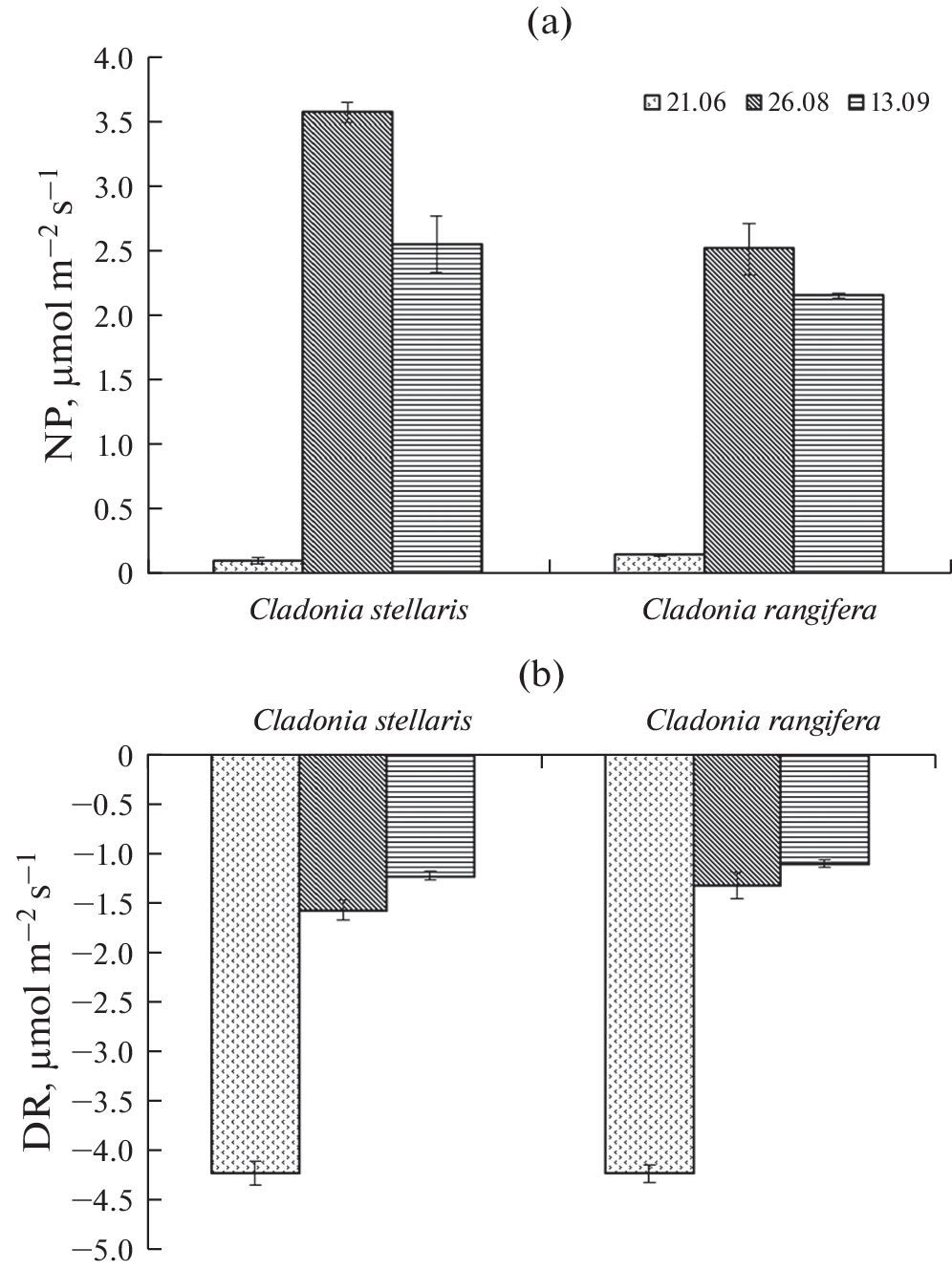- Moser T.J., Nash T.H., Link S. Diurnal gross photosynthetic patterns and potential seasonal CO2 assimilation in Cladonia stellaris and Cladonia rangiferina // Canadian J. Botany. 1983. V. 61(3). P. 642–55.