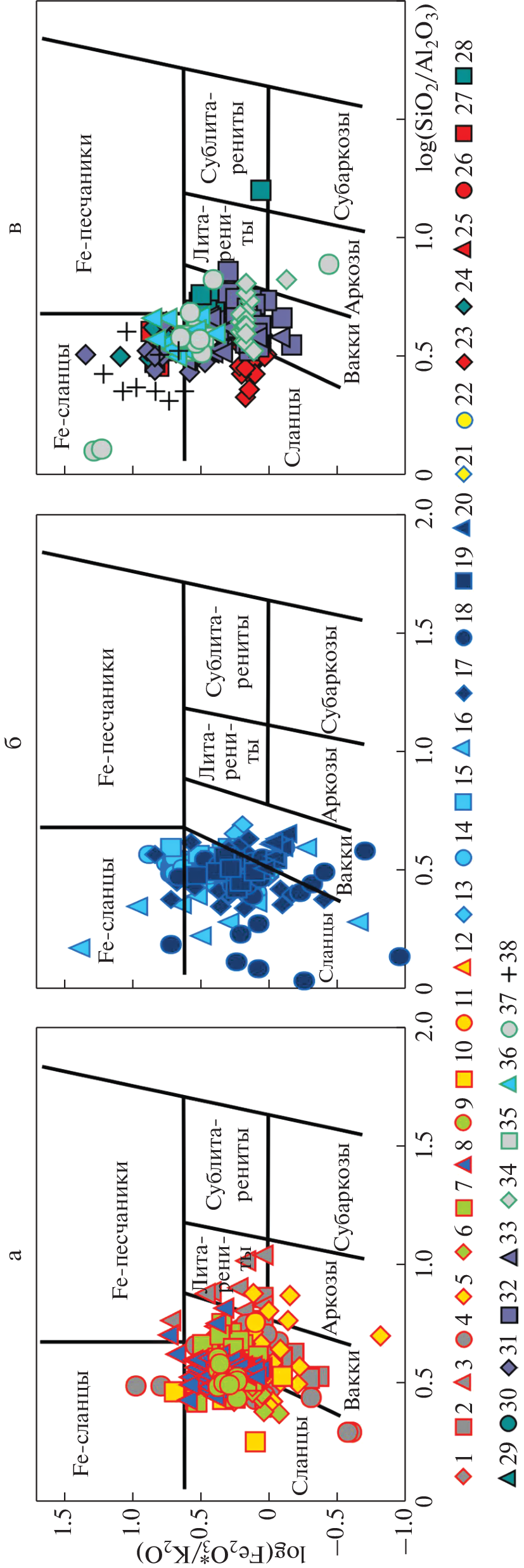- Verma S.P., Armstrong-Altrin J.S. New multi-dimensional diagrams for tectonic discrimination of siliciclastic sediments and their application to Precambrian basins // Chem. Geol. 2013. V. 355. P. 117–133.