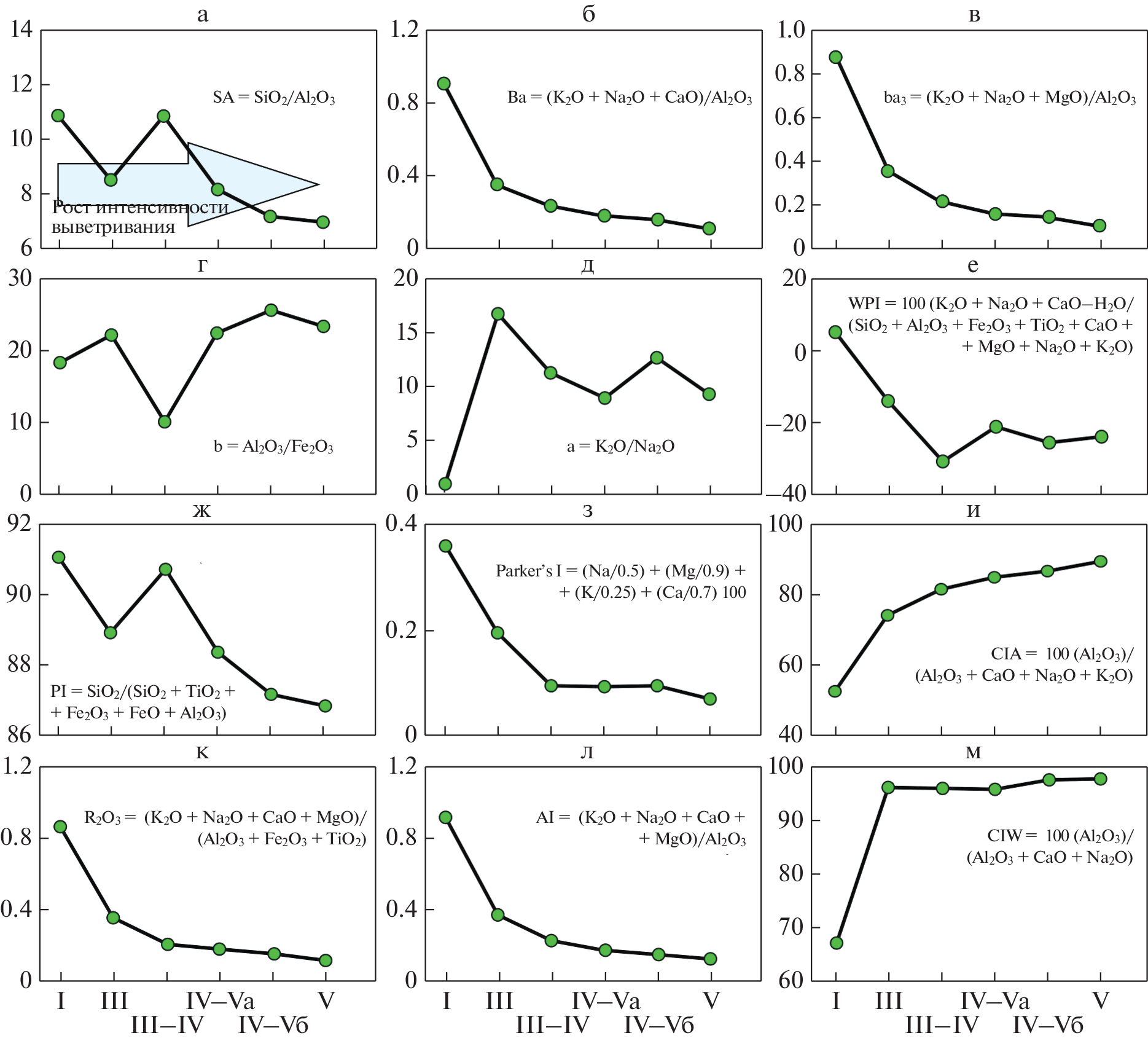 - Price J.R., Velbel M.A. Chemical weathering indices applied to weathering profiles developed on heterogeneous felsic metamorphic parent rocks // Chem. Geol. 2003. V. 202. P. 397–416.