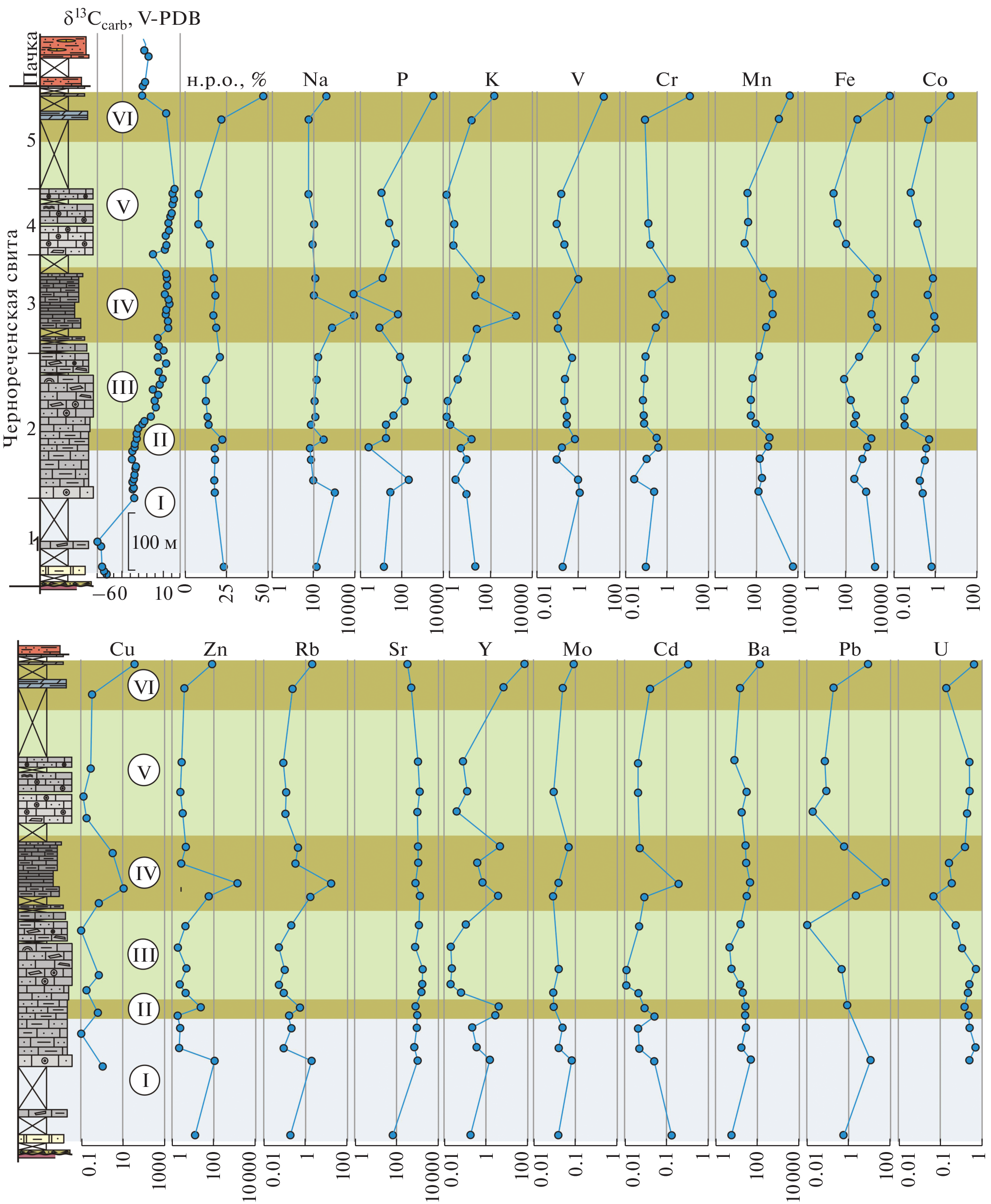 The Precambrian Chernaya Rechka Formation (Igarka Uplift) hosts a high-amplitude positive carbonate carbon isotope anomaly (up to 12.4‰) spanning through 500 m of the section and occurring simultaneously with a rise of δ13Сorg values. The similar trends of carbon isotope variations in the carbonate fraction and organic matter are not caused by local sedimentary environments since the studied anomaly-bearing carbonates accumulated in different zones of the carbonate ramp and shallow shelf. Oxygen isotope composition of these carbonates and some other geochemical criteria indicate minimal (if any) impact of post-sedimentary processes on preservation of the isotope systems. Concentrations of trace elements in the carbonate fraction indicate alternating anoxic and oxic environments that did not affected the carbon isotope composition during accumulation of the Chernaya Rechka Formation. The profound positive δ13С anomaly was putatively caused by a global deficiency of 12С in the paleo-ocean related to accumulation of methane hydrates and burial of non-oxidized organic matter. Together with geochronological and stratigraphic data, minimal 87Sr/86Sr values (0.7074) in the Chernaya Rechka Formation reveal the lower Ediacaran (lower Vendian) age of the unit (635–580 Ma). Among the closest stratigraphic analogues of the Chernaya Rechka Formation are the Dal’nyaya Taiga Group (Patom Basin) and coeval stratigraphic sequences in the southern Siberian Platform. Global nature of the positive δ13С anomaly provide its correlation with other coeval C-isotope events worldwide.