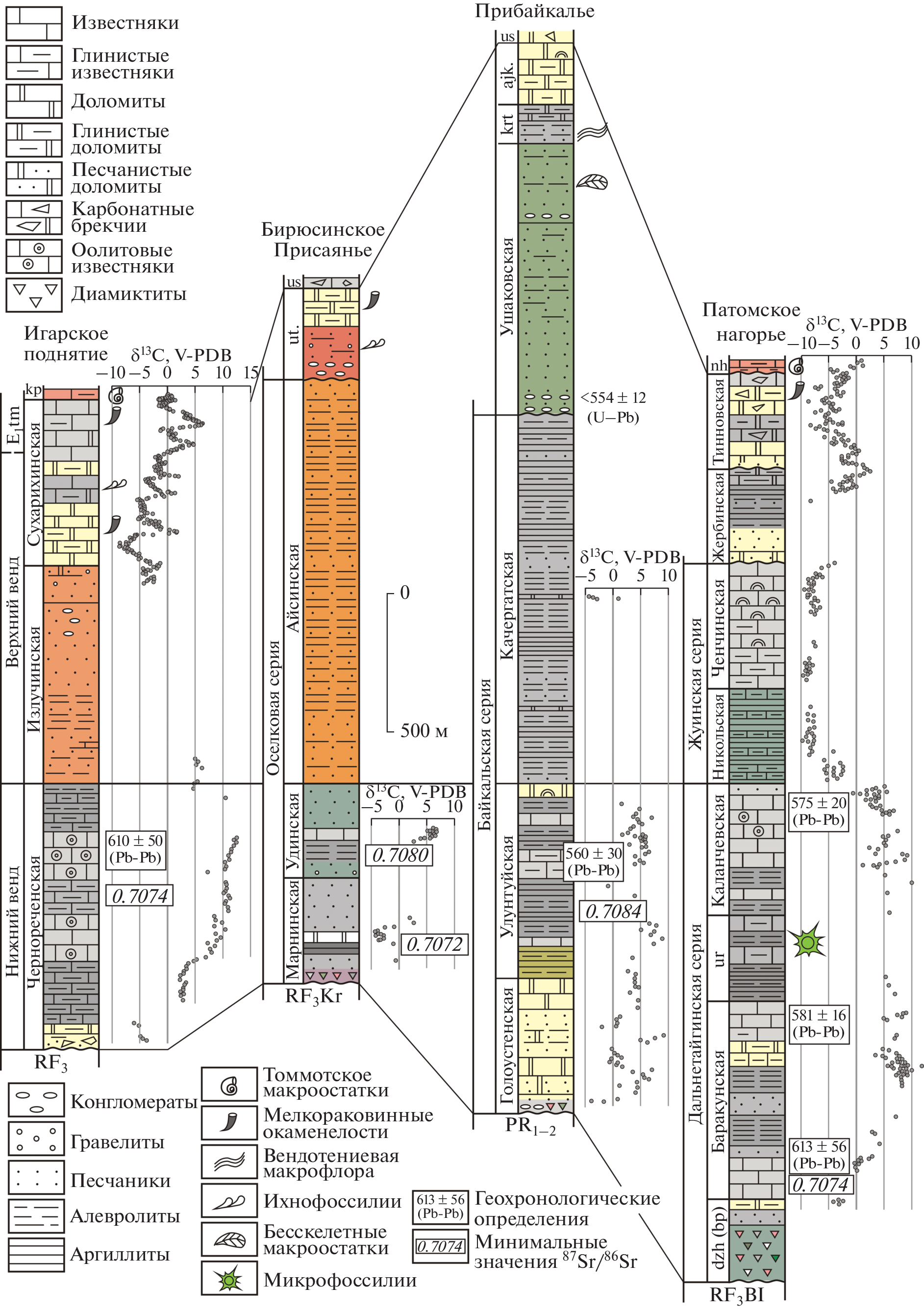- Rud’ko S.V., Kuznetsov A.B., Petrov P.Yu. et al. Pb-Pb dating of the Dal’nyaya Taiga Group in the Ura uplift of southern Siberia: Implication for correlation of C-isotopic and biotic events in the Ediacaran // Precambrian Res. 2021. V. 362. 106285.