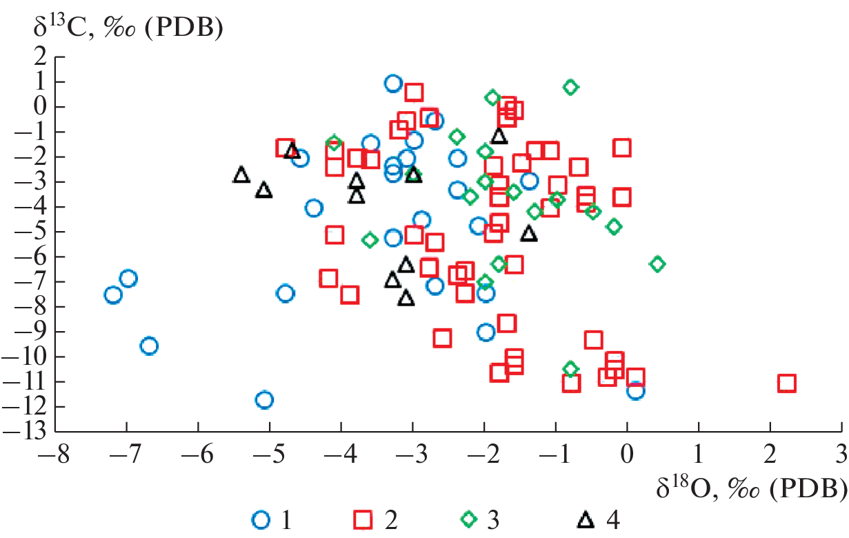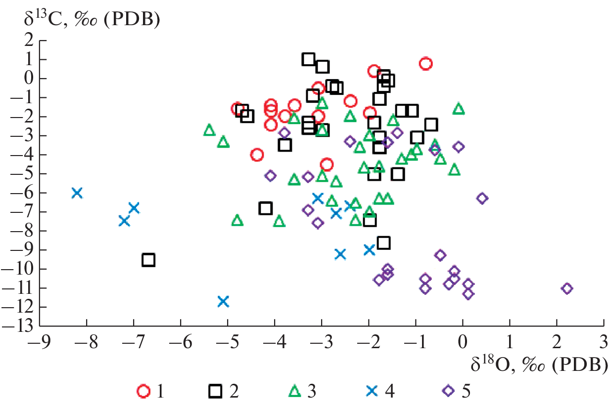 - Veizer J., Ala D., Azmy K. et al. 87Sr/86Sr, δ13C and δ18O evolution of Phanerozoic seawater // Chemical Geology. 1999. V. 161. P. 59–88.