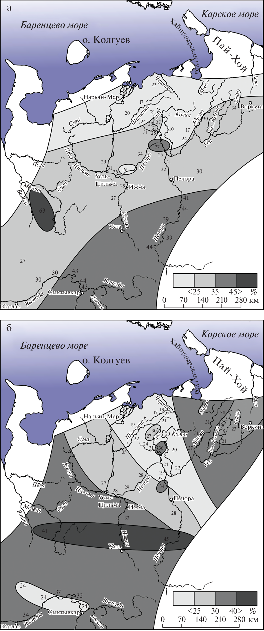 The results of granulometric analyzes of the basal Neopleistocene moraines from sections of coastal outcrops and boreholes in the vast territory of the European Subarctic of Russia and in the more southern regions of the Timan-Pechora-Vychegoda region have been summarized. It showed that moraines are typical mixed, practically unsorted rocks with similar contents of gravel-sand, silt, and clay fractions, which is one of arguments is in favor of thear glacial genesis. Their granulometric composition is due to the peculiarities of the rocks of the ice bed.It is formed in the process of crushing, abrasion, and mixing of material assimilated and transported by the glacier during its transportation and deposition, which determines the variability of the granulometric composition of moraines. As a result, the granulometric composition of the moraines in combination with other lithological data reflects the path of the glacier and the dynamics of its movement.