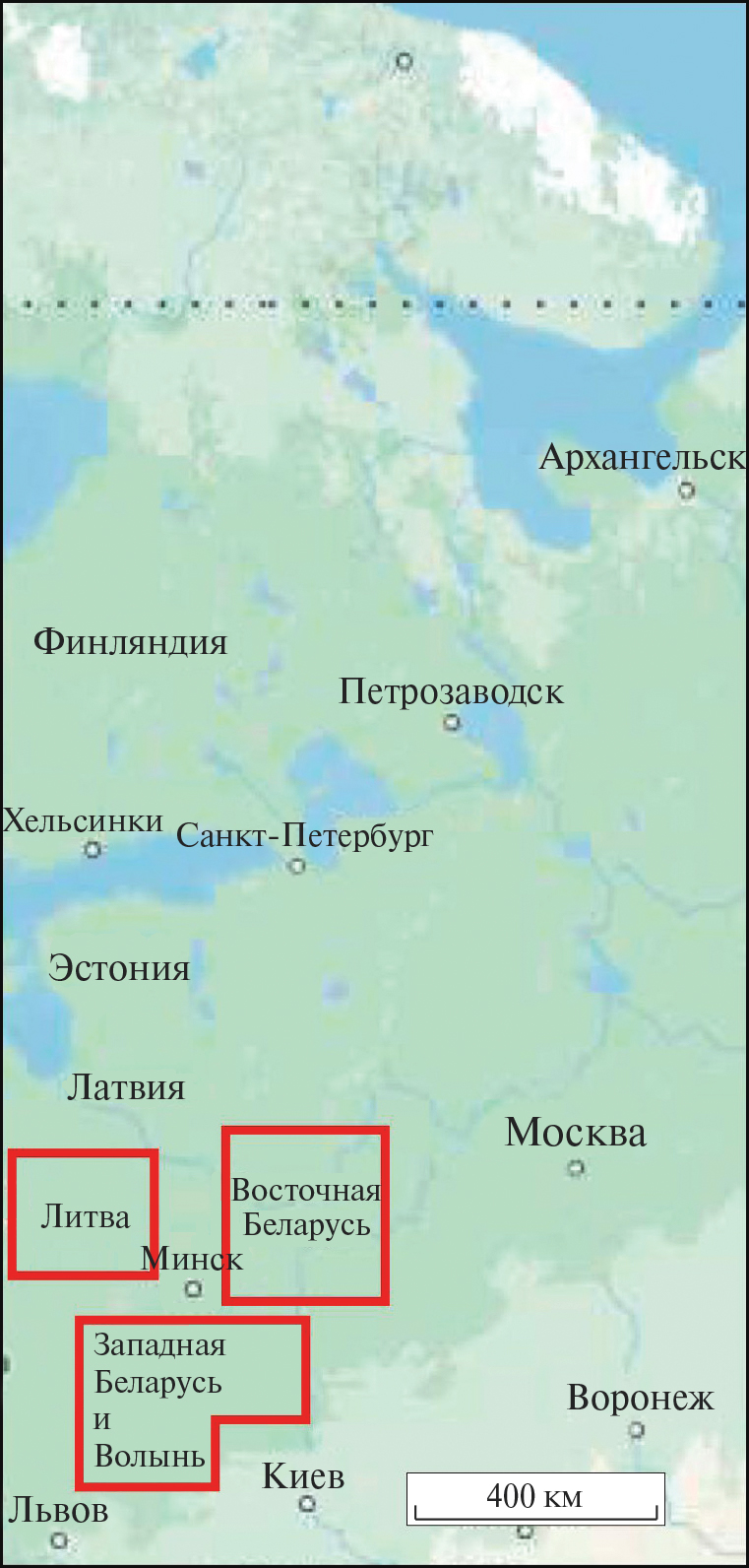 1 – Западная Беларусь и Волынь; 2 – Восточная Беларусь; 3 – Литва.