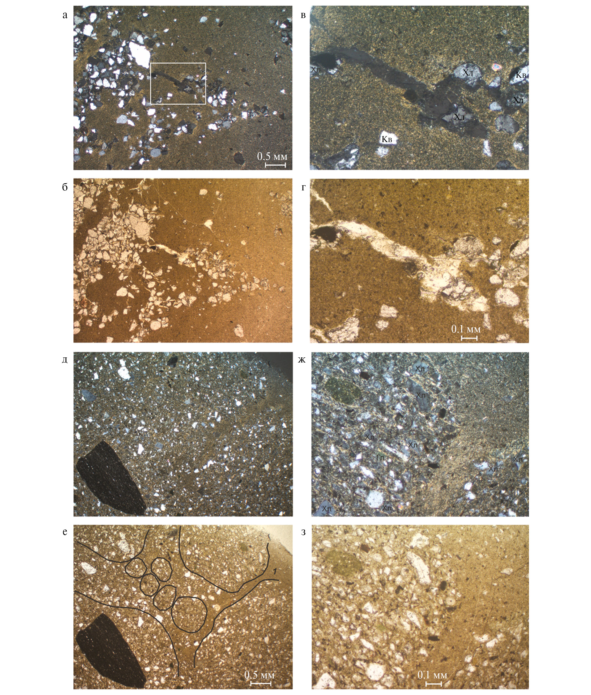 В зарубежных исследованиях при изучении отложений, образовавшихся в морских, ледниковых и перигляциальных условиях, с успехом применяется микроморфологический анализ, предметом которого является взаимное расположения составных частей осадочной массы, к которым относятся обломочный материал алевритовой, песчаной и гравийно-галечной размерности, тонкодисперсное вещество, поровые и трещинные пространства, а также новообразования [Meer van der, Menzies, 2011]. Данный подход вполне близок структурно-текстурному анализу, более распространенному в отечественных работах. Таким образом, с учетом имеющейся базы микроморфологических проявлений воздействия различных видов ледовой нагрузки [Linch et al., 2012], в данном исследовании анализируются микротекстурные и микроструктурные особенности в петрографических шлифах осадков юго-западной части Карского моря, отобранных как непосредственно в ледово-экзарационных бороздах, так и на фоновых поверхностях, не нарушенных ледовой экзарацией. Выполнена попытка проследить проявления ледниковой нагрузки в микротекстуре исследуемых отложений на фоновых поверхностях дна, поскольку вопрос о положении границы последнего оледенения на акватории Карского моря остается дискуссионным.