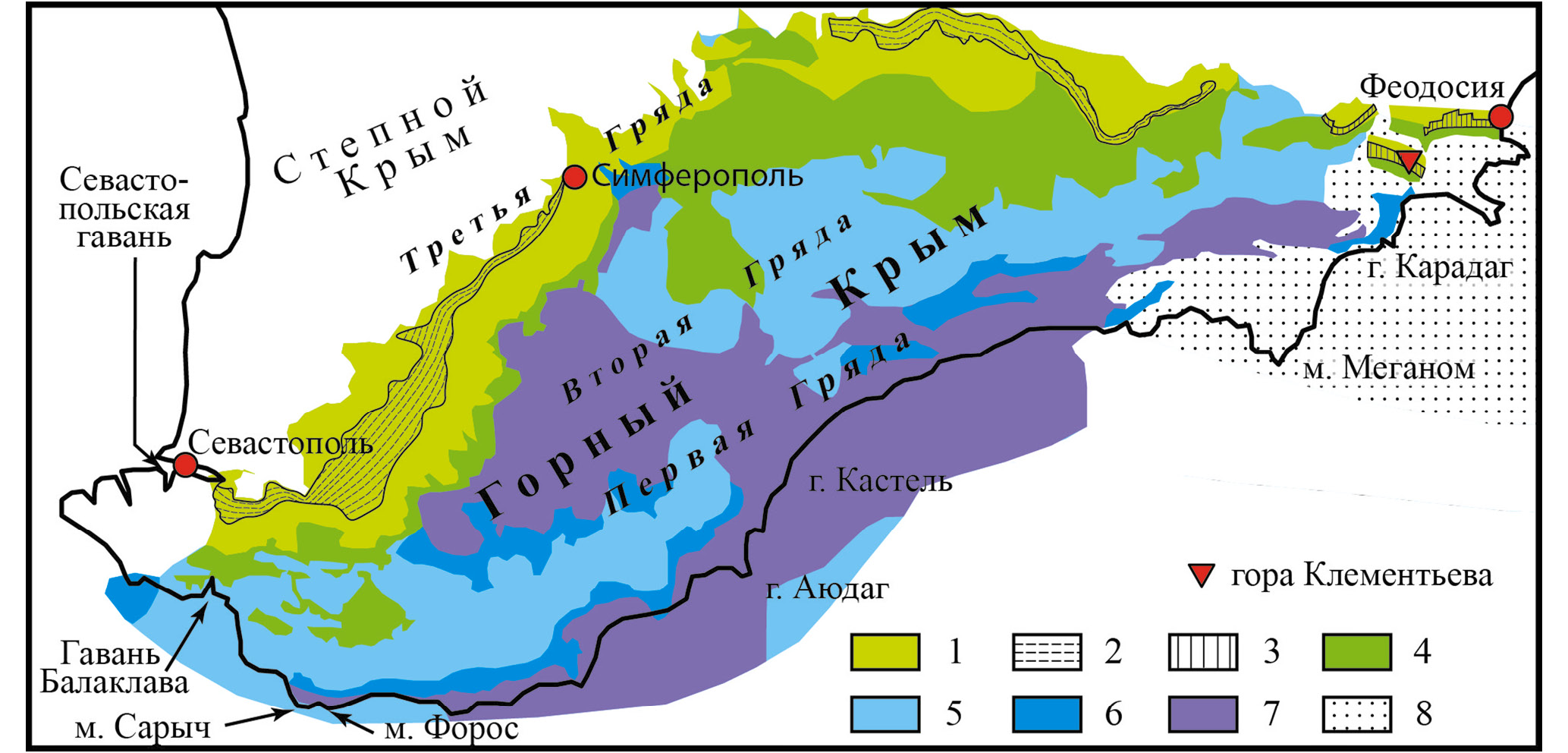 - Nikishin A.M., Wannier M., Alekseev A.S. et al. Mesozoic to Recent Geological History of Southern Crimea and the Eastern Black Sea Region // Geol. Soc. Spec. Publ. 2015. № 1(428). P. 241–264.