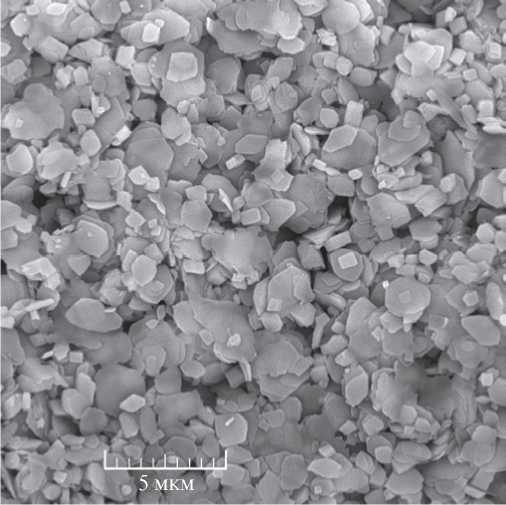 Биотит на микрофотографии, полученной в сканирующем электронном микроскопе для образца 3081, имеет шестигранную форму пластинок с ровными краями, которая указывает на его аутигенное происхождение (см. рис. 5). В ориентированном препарате фракции <0.001 мм, в которой содержание биотита 86.8% (см. табл. 6), преобладают пластинки биотита похожие на шестигранники с ровными краями, реже встречаются пластинки биотита таблитчатой формы (см. рис. 6). Шестигранная и таблитчатая формы вообще характерны для биотитов, присутствующих в магматических кислых породах.