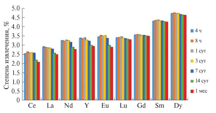 Таблица 5. Степень извлечения (%) катионов редкоземельных и тяжелых металлов из модельного раствора шламовых вод хвостохранилищ Кавалеровского района железомарганцевыми корками гайота Говорова