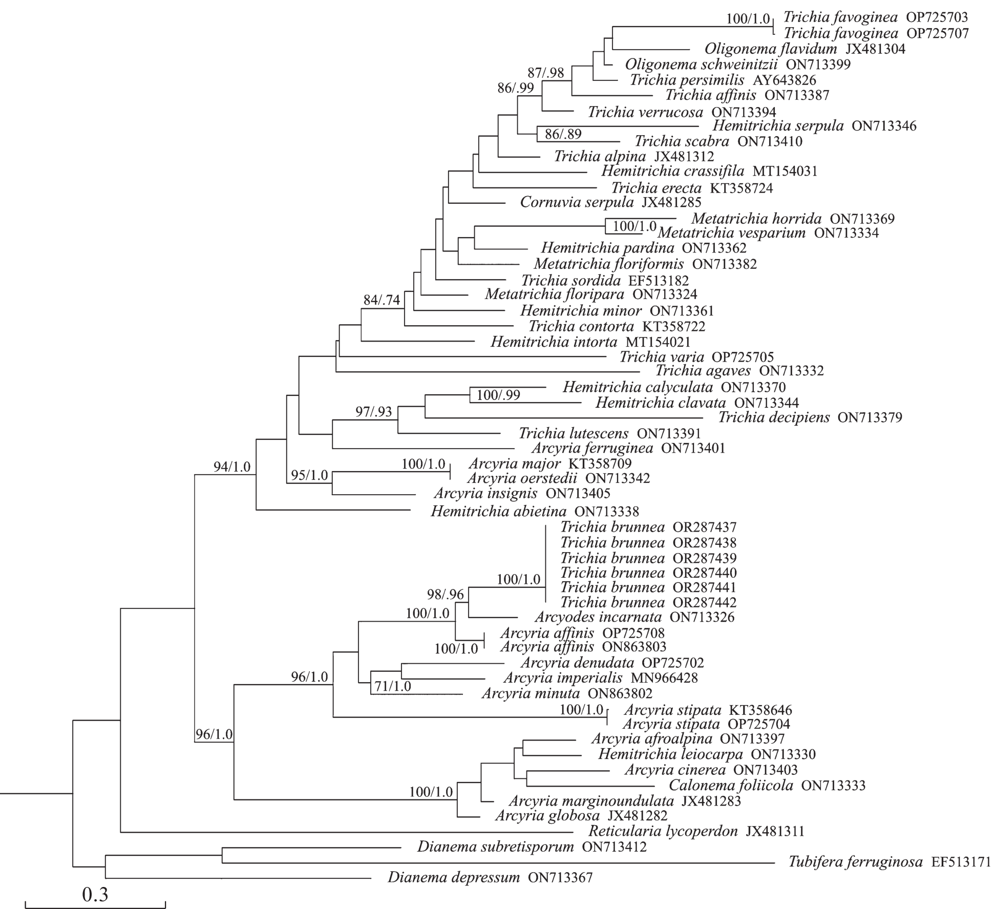 PHYLOGENY OF TRICHIA BRUNNEA AND NEW NAMES IN THE GENUS ARCYRIA (TRICHIALES, MYXOMYCETES)