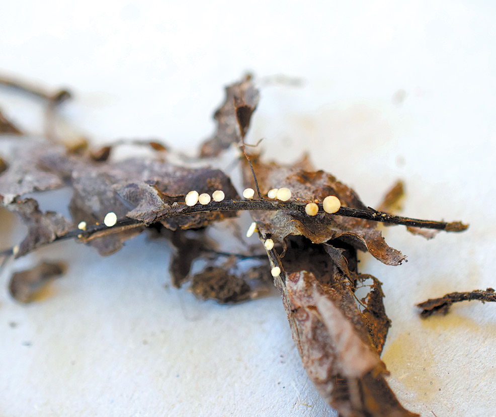 Fig. 1. Hymenoscyphus epiphyllus on the veins of fallen leaves.