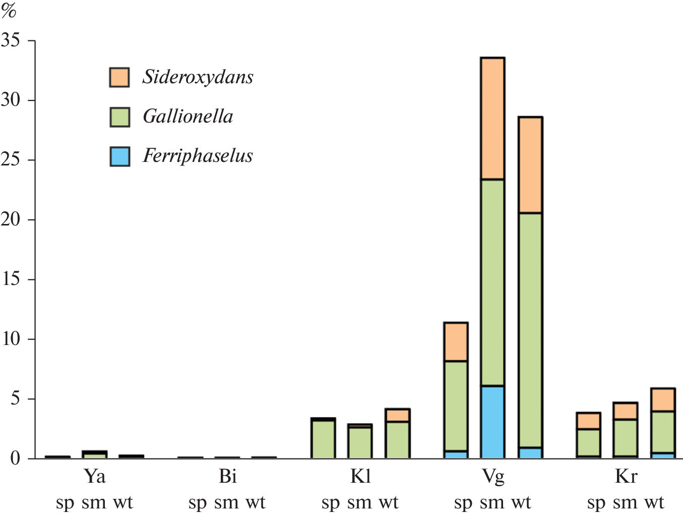 - Kato S., Krepski S., Chan C., Itoh T., Ohkuma M. Ferriphaselus amnicola gen. nov., sp. nov., a neutrophilic, stalk-forming, iron-oxidizing bacterium isolated from an iron-rich groundwater seep // Int. J. Syst. Evol. Microbiol. 2014. V. 64. P. 921‒925.