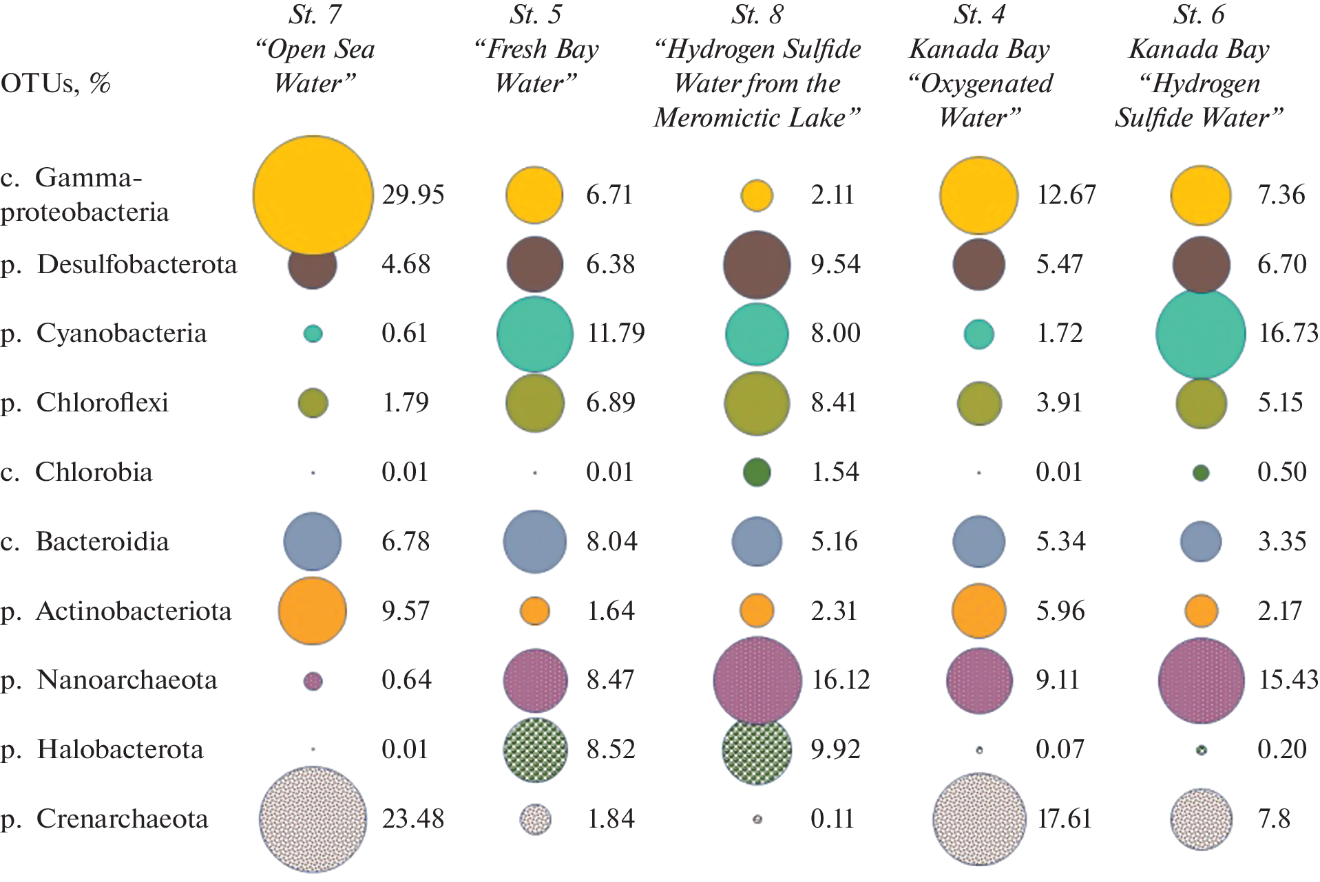- Savvichev A.S., Babenko V.V., Lunina O.N., Letarova M.A., Boldyreva D.I., Veslopolova E.F., Demidenko N.A., Kokryatskaya N.M., Krasnova E.D., Gaisin V.A., Kostryukova E.S., Gorlenko V.M., Letarov A.V. Sharp water column stratification with an extremely dense microbial population in a small meromictic lake, Trekhtzvetnoe // Environ. Microbiol. 2018. V. 20. P. 3784−3797. https://doi.org/10.1111/1462-2920.14384