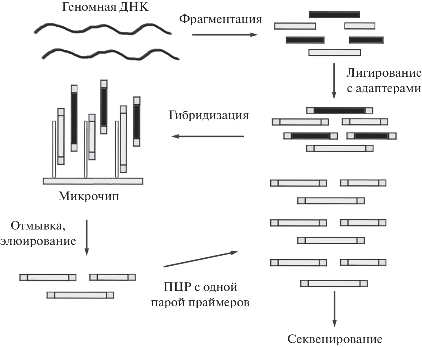 Application of oligonucleotides, mainly obtained using new generation DNA synthesizers (microarray DNA synthesizers), for the enrichment of targeted genomic fragments are described. Methods of molecular hybridization, polymerase chain reaction and CRISPR-based methods for targets enrichment are considered. Examples of the practical use of the developed methods for research and diagnostic purposes are given.
