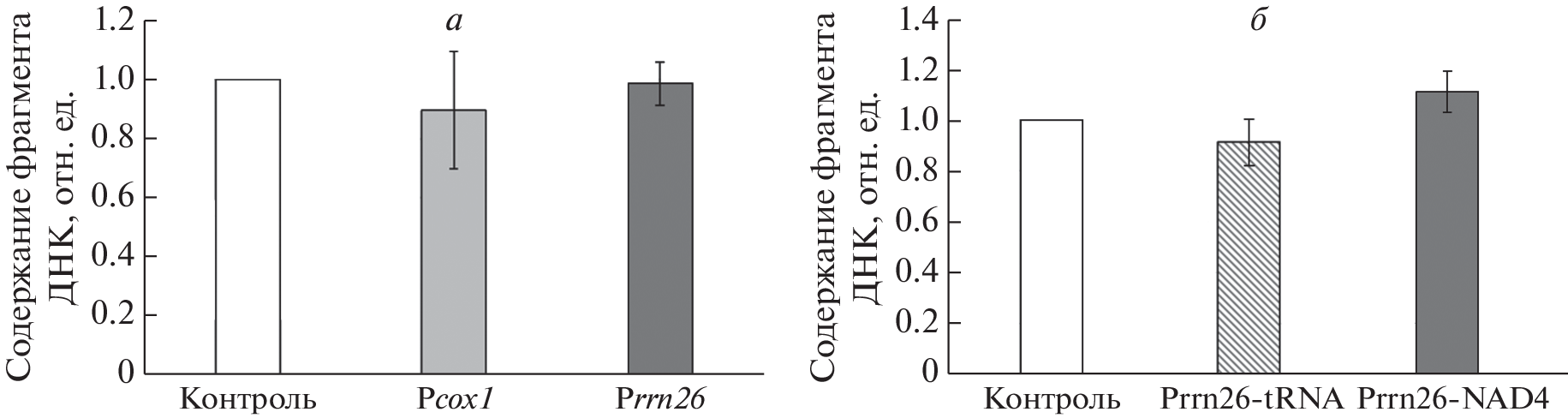 Genetic transformation of higher eukaryotes mitochondria in vivo is one of the unresolved and important problems. For efficient expression of foreign genetic material in mitochondria, it is necessary to select regulatory elements that ensure a high level of transcription and transcript stability. This work is aimed at studying the effectiveness of regulatory elements of mitochondrial genes flanking exogenous DNA using the phenomenon of natural competence of plant mitochondria. For this purpose, genetic constructs carrying the GFP gene under the control of the promoter regions of the RRN26 or COX1 genes and one of the two 3'-untranslated regions (3'-UTR) of mitochondrial genes were imported into isolated Arabidopsis mitochondria, followed by transcription in organello. It was shown that the level of GFP expression under the control of promoters of the RRN26 or COX1 genes in organello correlates with the level of transcription of these genes observed in vivo. At the same time, the presence of the tRNAТrp sequence in the 3'-UTR leads to a higher level of the GFP transcript than the presence in this region of the 3'-UTR of the NAD4 gene containing the binding site of the MTSF1 protein. The results obtained open up prospects for creating a system for efficient transformation of the mitochondrial genome.