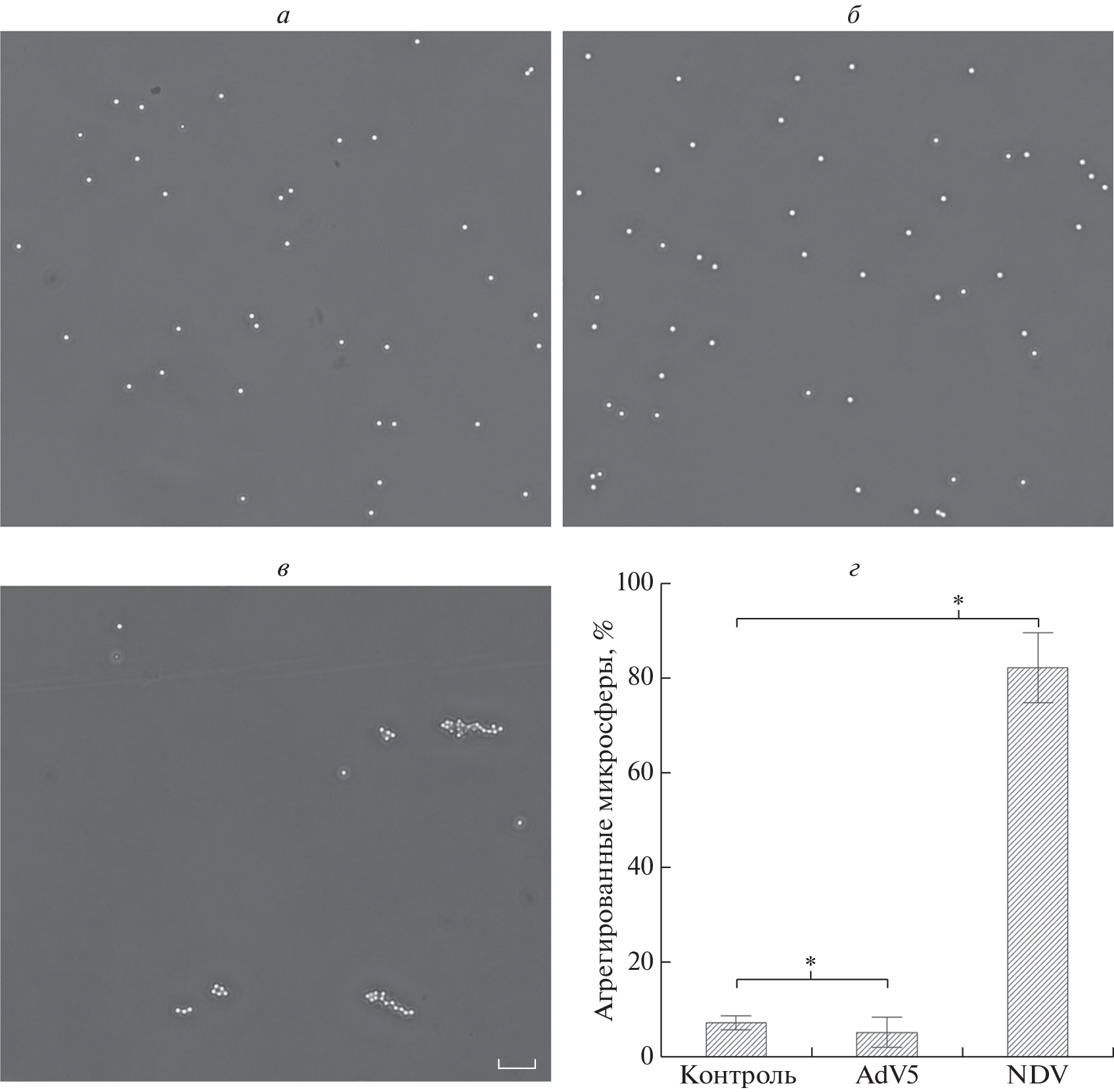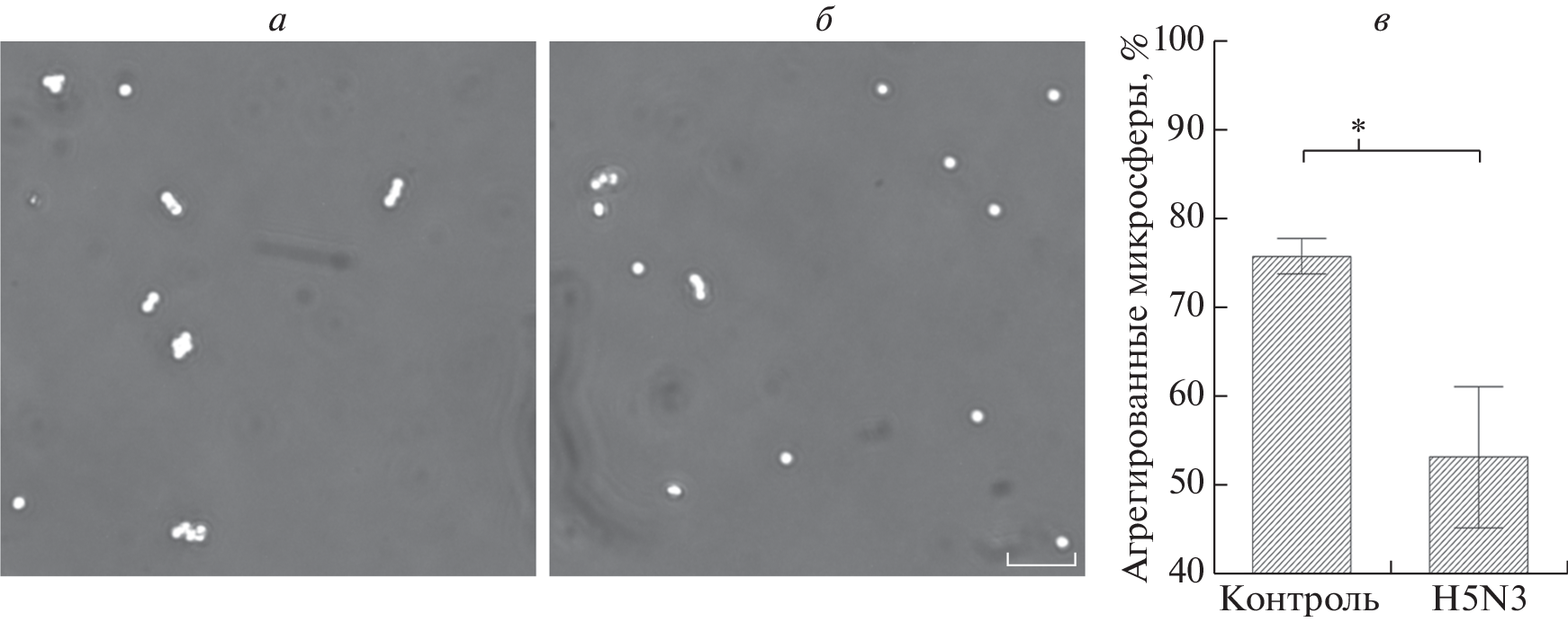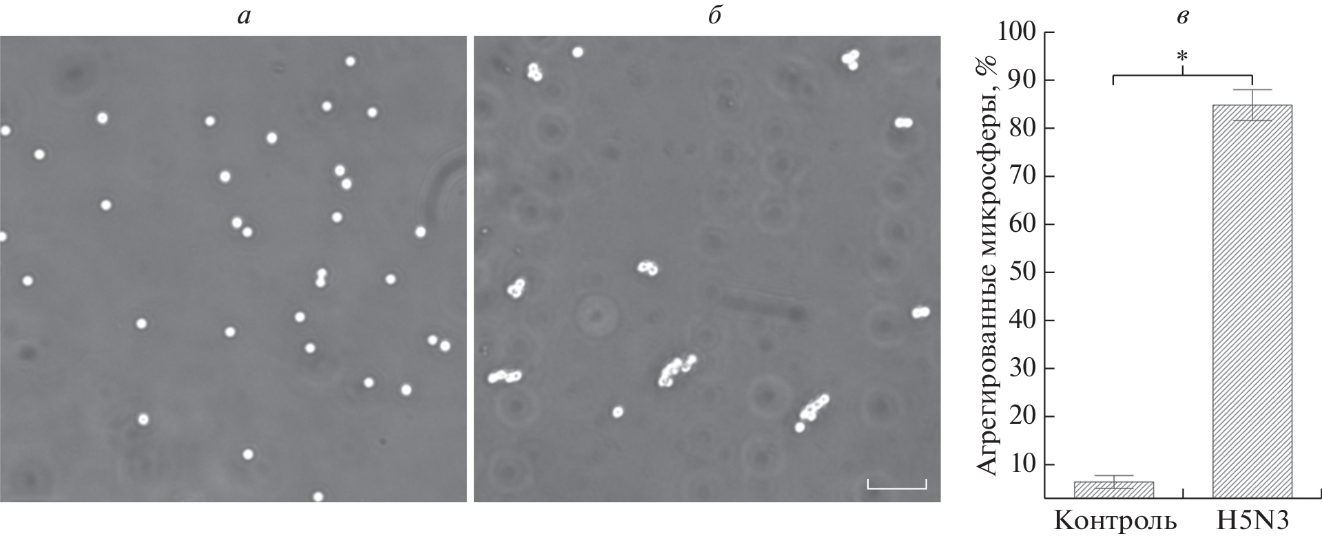 As an alternative to the classical method of erythrocyte hemagglutination, a latex agglutination assay based on the interaction of influenza viruses with the sialoglycoprotein fetuin immobilized on the surface of polystyrene microspheres, has been developed. Twelve influenza A virus strains of different subtypes and two influenza B viruses of different lines were tested. Simultaneous titration of viruses using the classical hemagglutination test and the proposed latex agglutination assay showed similar sensitivity and a high degree of correlation (R = 0.94). The obtained microspheres can be used for titration of viruses that recognize and bind sialylated glycans as receptors. In particular, latex aggregation was also induced by the Newcastle disease virus.