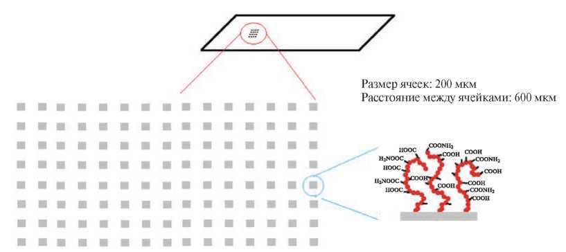 Рис. 4. Схема расположения ячеек на подложке биочипа после УФ-полимеризации через фотомаску.