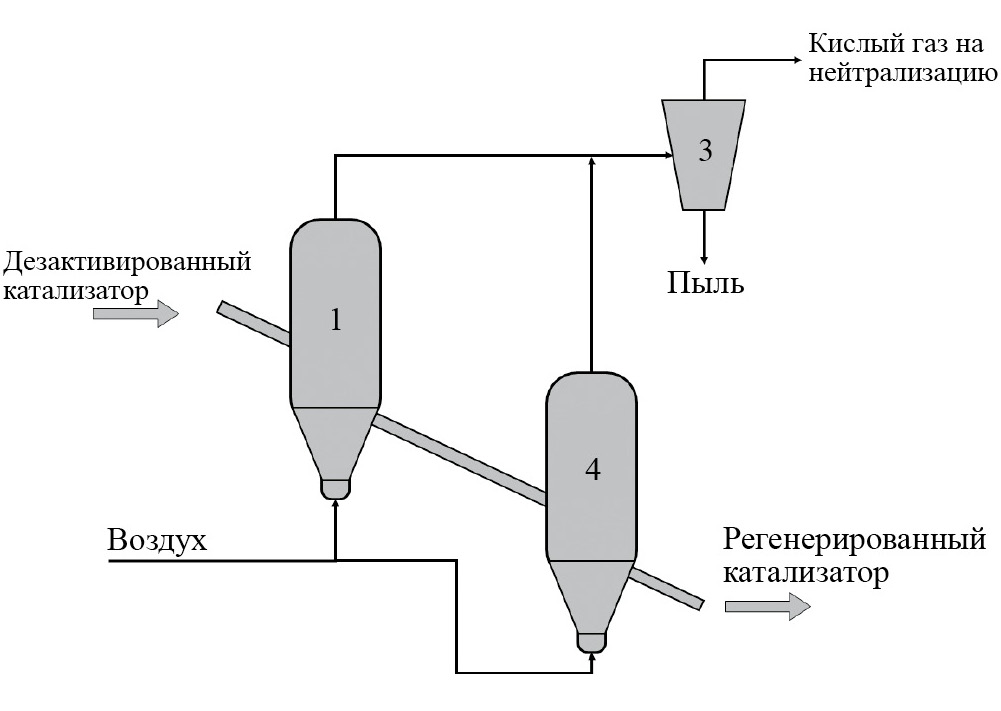 Регенерация в каталитическом реакторе. Регенерация катализаторов in situ – технология, реализуемая непосредственно в каталитическом реакторе ГО без выгрузки катализатора. Данный метод регенерации для катализаторов ГО среднедистиллятных фракций широко применялся за рубежом до середины 1980-х гг. и до конца 2000-х гг. в Российской Федерации. В литературе он встречается и в более поздних публикациях [36]. Процесс включает следующие основные стадии: