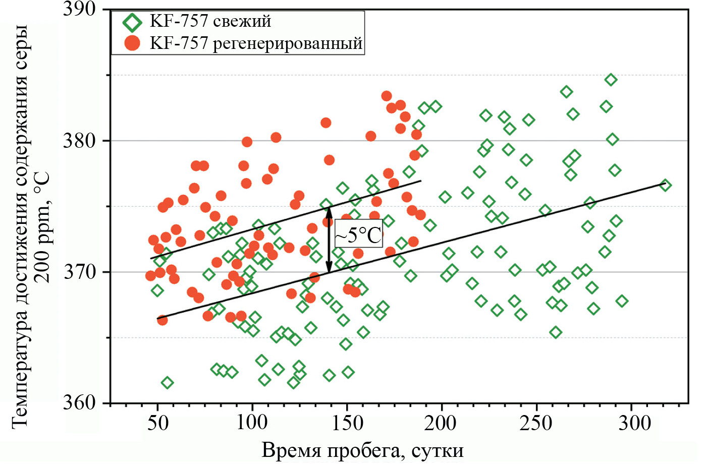 – необратимая потеря активности современных катализаторов более чем на 20% за одну регенерацию in situ.