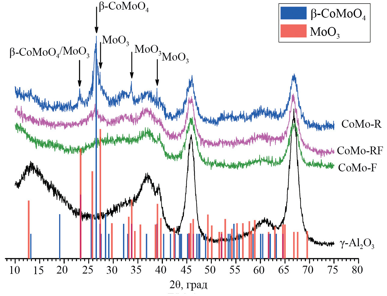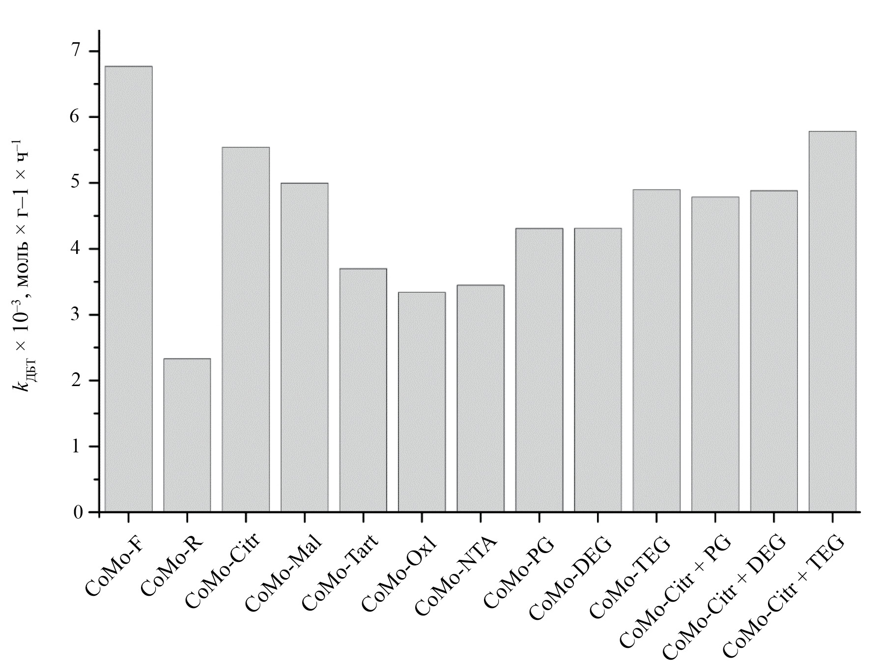 Несмотря на развитие химических процессов, относящихся к низкоуглеродной энергетике, нефтепереработка остается ключевой технологией для снабжения энергоресурсами. К крупнотоннажным процессам нефтепереработки относятся процессы каталитического крекинга, риформинга и гидроочистки, среди которых гидроочистка (ГО) является преобладающим процессом [1]. Главную роль в развитии процесса ГО сыграли экологические требования, обусловленные тем, что при сжигании топлив в атмосферу выбрасывается очень большое количество вредных веществ (оксиды серы, азота, углерода). Важность процесса ГО описана во многих публикациях, где рассмотрены актуальность, механизм протекания и пр. [2–5]. В качестве катализаторов используют сульфиды MoS2 /WS2, промотированные атомами Ni(Co), нанесенные на носитель – различные пористые оксиды, например, γ-Al2O3. Современные катализаторы обычно содержат нанесенные металлы в виде высокоактивных и полностью сульфидированных биметаллических соединений, слабо взаимодействующих с носителем. Такой активный компонент часто называют Co(Ni)–Mo–S-фазой 2-го типа [6, 7].