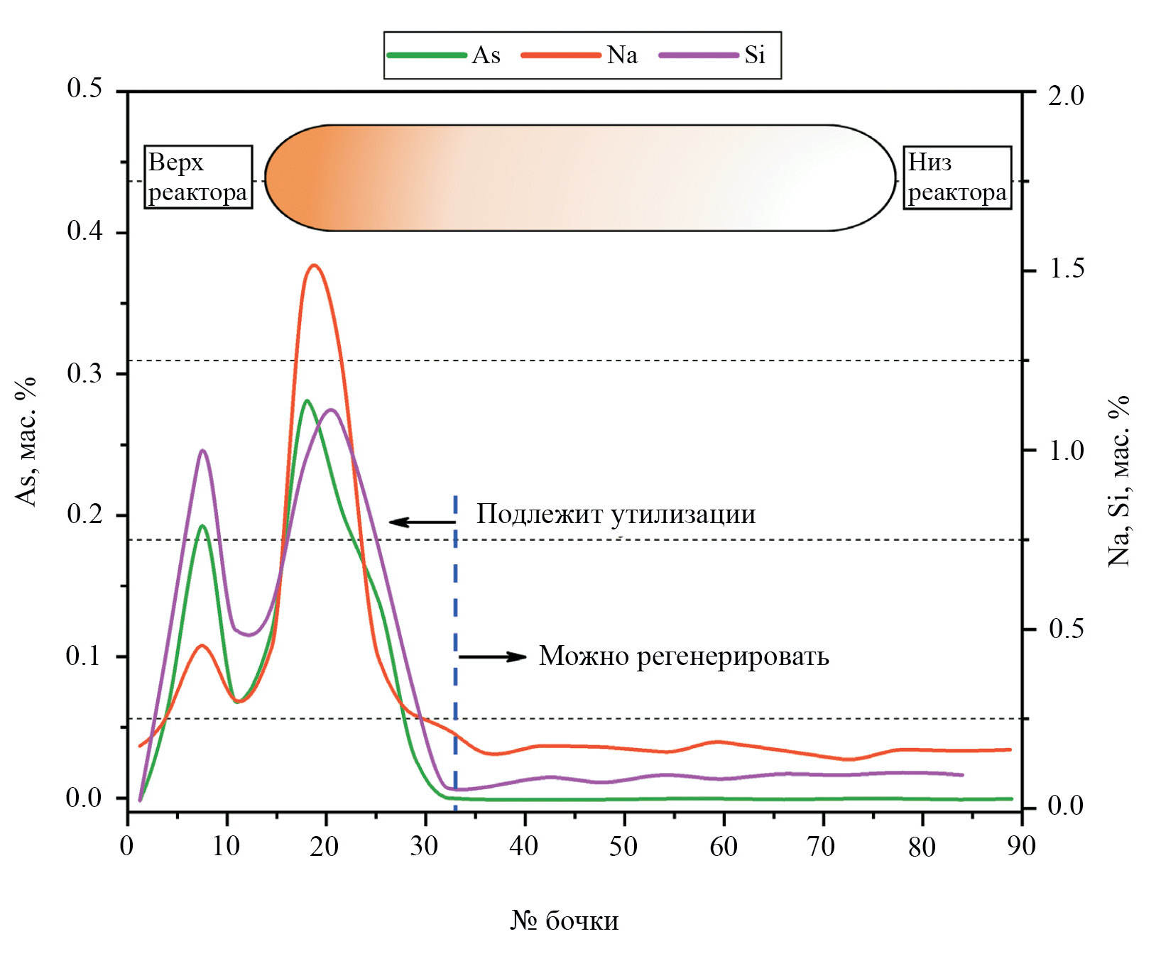 – длительность процесса регенерации. Для минимизации локальных зон перегрева в слое и возможности исключения неконтролируемого выжига кокса при регенерации используют газовую смесь с низким содержанием кислорода (0.5–5.0 об. % O2). Все это приводит к тому, что регенерация может продолжаться от пары недель и до месяца; это сопровождается простоем установки и ведет к экономическим издержкам, что неприемлемо для НПЗ;