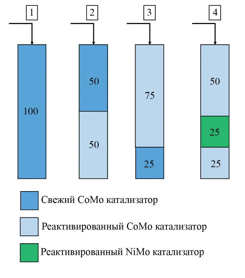 Последовательное использование (каскадирование) катализаторов. Термин «cascading» [13] получил широкое распространение за рубежом и подразумевает дополнительные возможности повторного или последовательного (каскадного) использования отработанных катализаторов в менее или более жестких условиях и процессах ГО. В литературе рассматривается несколько направлений каскадного применения дезактивированных, регенерированных и реактивированных катализаторов в зависимости от их состояния.