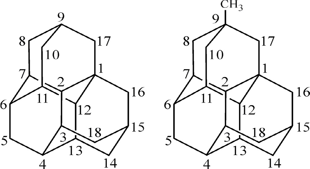 Триамантан 9-Метилтриамантан | 18 19 | 333 334 | 1910 1915 |