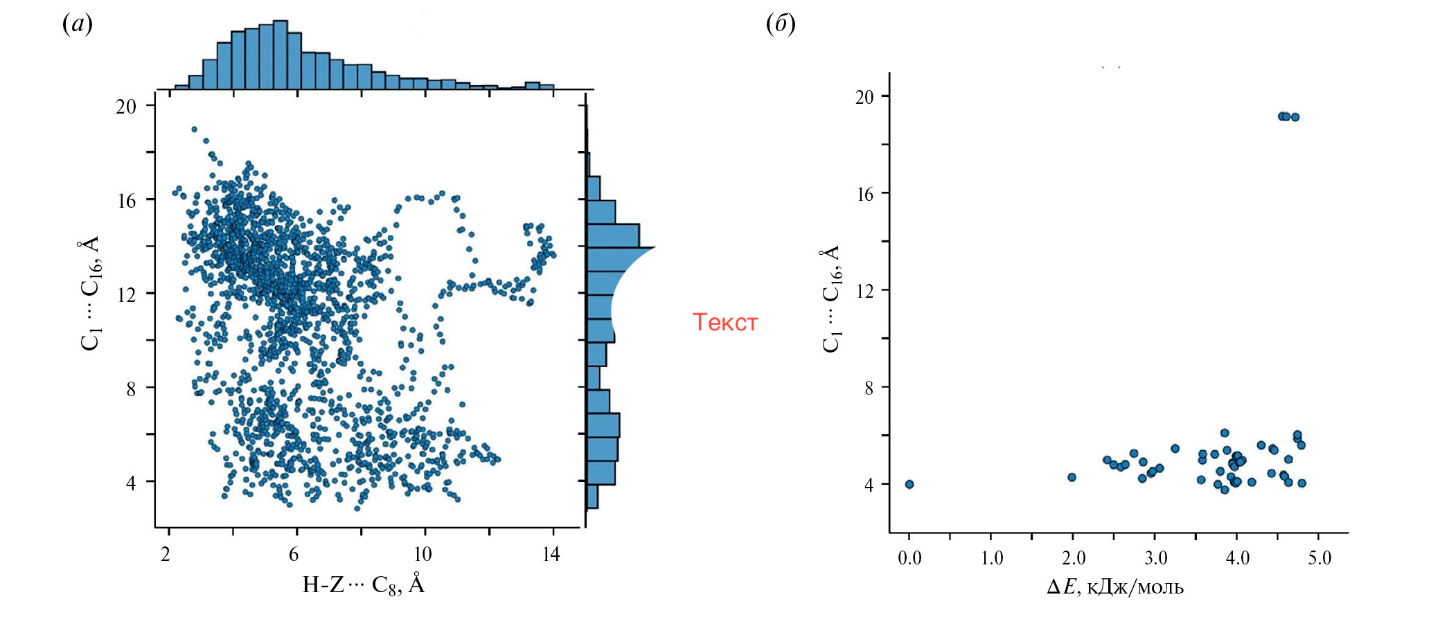 Молекулярная динамика и конформационный анализ были выполнены с использованием метода силового поля (GFN-FF) для моделирования взаимодействий между атомами в молекулах [36]. Для проведения конформационного анализа н-гексадекана была использована программа CREST [37].