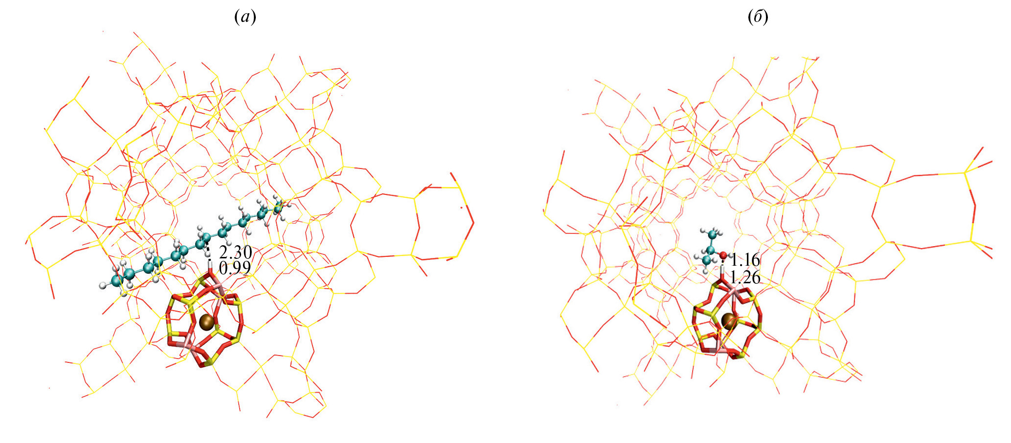 К примеру, используя DFT-моделирование, была исследована роль ионов редкоземельных элементов в предотвращении деалюминирования цеолита Y как одного из ключевых компонентов промышленного катализатора крекинга [24]. Аналогичным образом методами DFT-моделирования были установлены реакционные пути при крекинге н-гексана с образованием промежуточных карбониевых ионов на цеолитах Y и ZSM-5 [25]. Роль редкоземельных элементов и щелочноземельных металлов на структуру, реакционную способность и кислотность цеолита Y была учтена в расчетной периодической DFT-модели процесса крекинга н-октана [26].