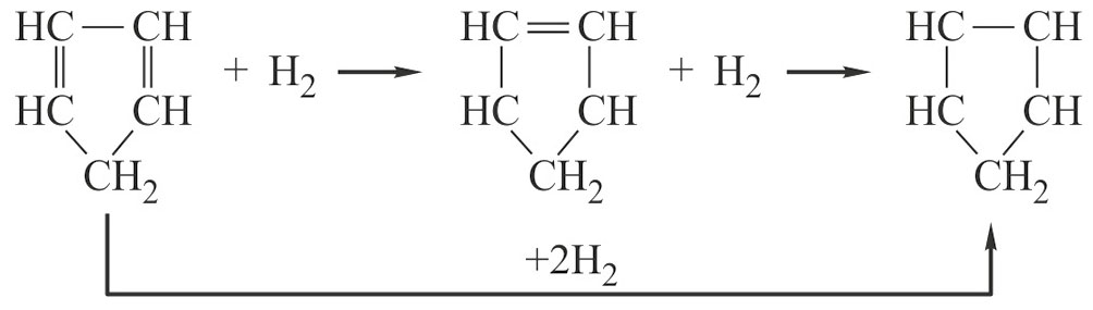 Реакция гидрирования циклопентадиена может протекать по двум направлениям (схема 1):