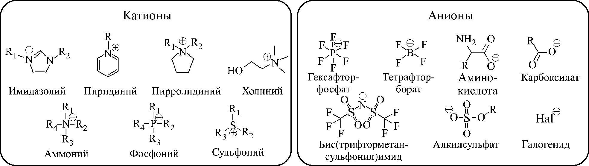 Рис. 1. Структура типичных катионов и анионов (по [3]).