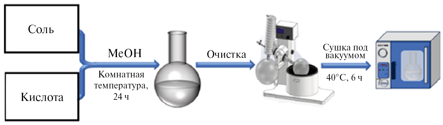 Основным методом получения ИЖ, пригодных для использования в качестве смазочных материалов и присадок к ним, служат реакции метатезиса (реакции обмена ионов), т. к. данный метод отличается простотой аппаратурного оформления; при этом процедура синтеза различных ИЖ различается незначительно. В общем случае реакции обмена могут быть разделены на две группы: обменная реакция через кислоты, соли металлов I группы или аммониевые соли; обменная реакция через соли серебра.