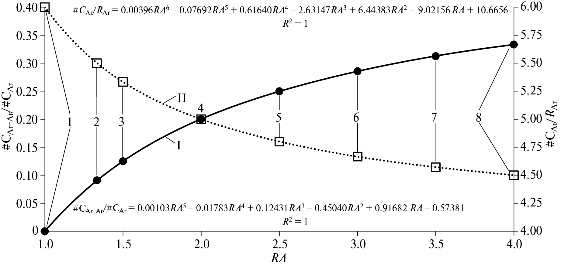 Число мостиковых ароматических атомов | #CAr–Ar | 1.23 | 6.35 | 3.06 | 6.52 |