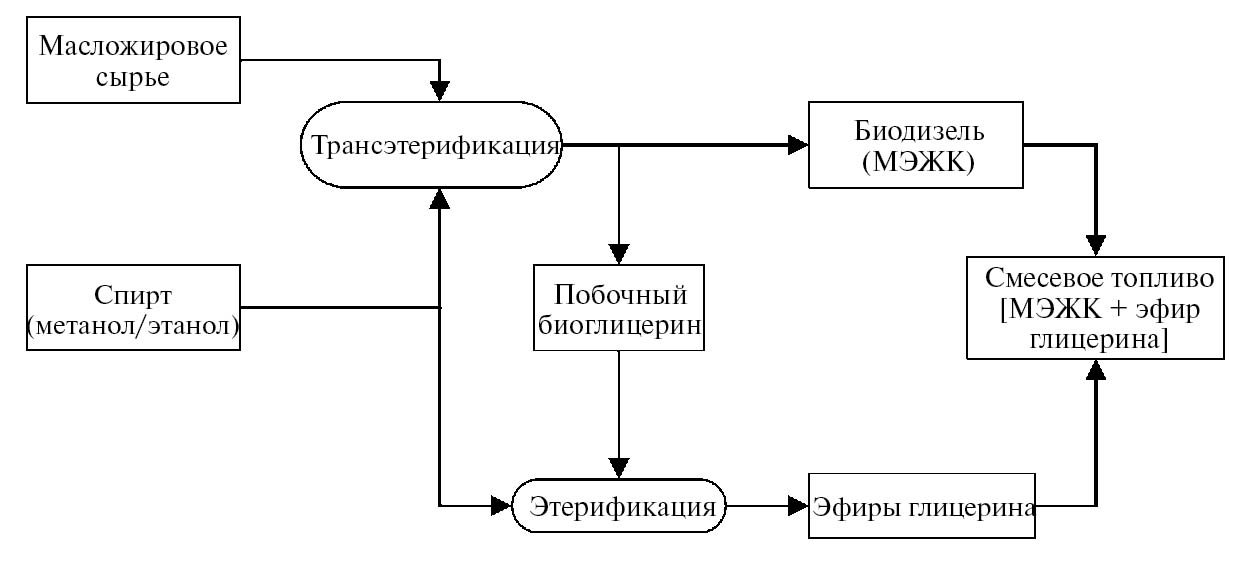 Последние годы явили биотопливному рынку новые технологии и новые типы технологий, включая производство синтетического изопарафинового топлива (HVO) из жирового сырья. Вместе с тем, несмотря на интенсивное развитие, биотопливо на основе метиловых эфиров жирных кислот (FAME) остается одним из основных компонентов, вовлекаемых в состав дизельных топлив. Сложившаяся ситуация сохранилась в том числе на фоне обновления европейской директивы о возобновляемых источниках энергии (European Renewable Energy Directive), обозначившей нежелательность использования пищевых масел для производства топлива: на смену маслам пищевого качества пришли использованные растительные масла и другие богатые жиром отходы; при переходе к этим биотопливам III поколения основным источником сырья должны стать триглицериды, культивируемые посредством микроводорослей. Таким образом, традиционная структура производства, предполагающая трансэтерификацию триглицеридного сырья и образование побочного глицерина, имеет все шансы сохраниться в дальнейшем — наряду с проблемой утилизации биоглицерина. Как следствие, пути превращения биоглицерина в компонент топлива по-прежнему привлекают к себе значительное внимание в силу следующих причин: 1) побочный глицерин не является пищевым ресурсом, что относит биотопливный компонент на его основе к категории “advanced” (продвинутый); 2) перенасыщенный рынок глицерина предопределяет избыточное предложение и, следовательно, низкую стоимость и широкую доступность; 3) экономическая эффективность реализации глицерина влияет на общую рентабельность биодизельного производства; 4) производимый в количествах, пропорциональных количеству главного продукта, глицерин требует утилизации адекватного масштаба.