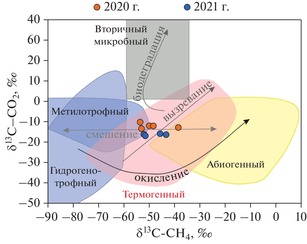 - Milkov A.V., Etiope G. Revised genetic diagrams for natural gases based on a global dataset of >20,000 samples // Org. Geochem. 2018. V. 125. P. 109–120.
