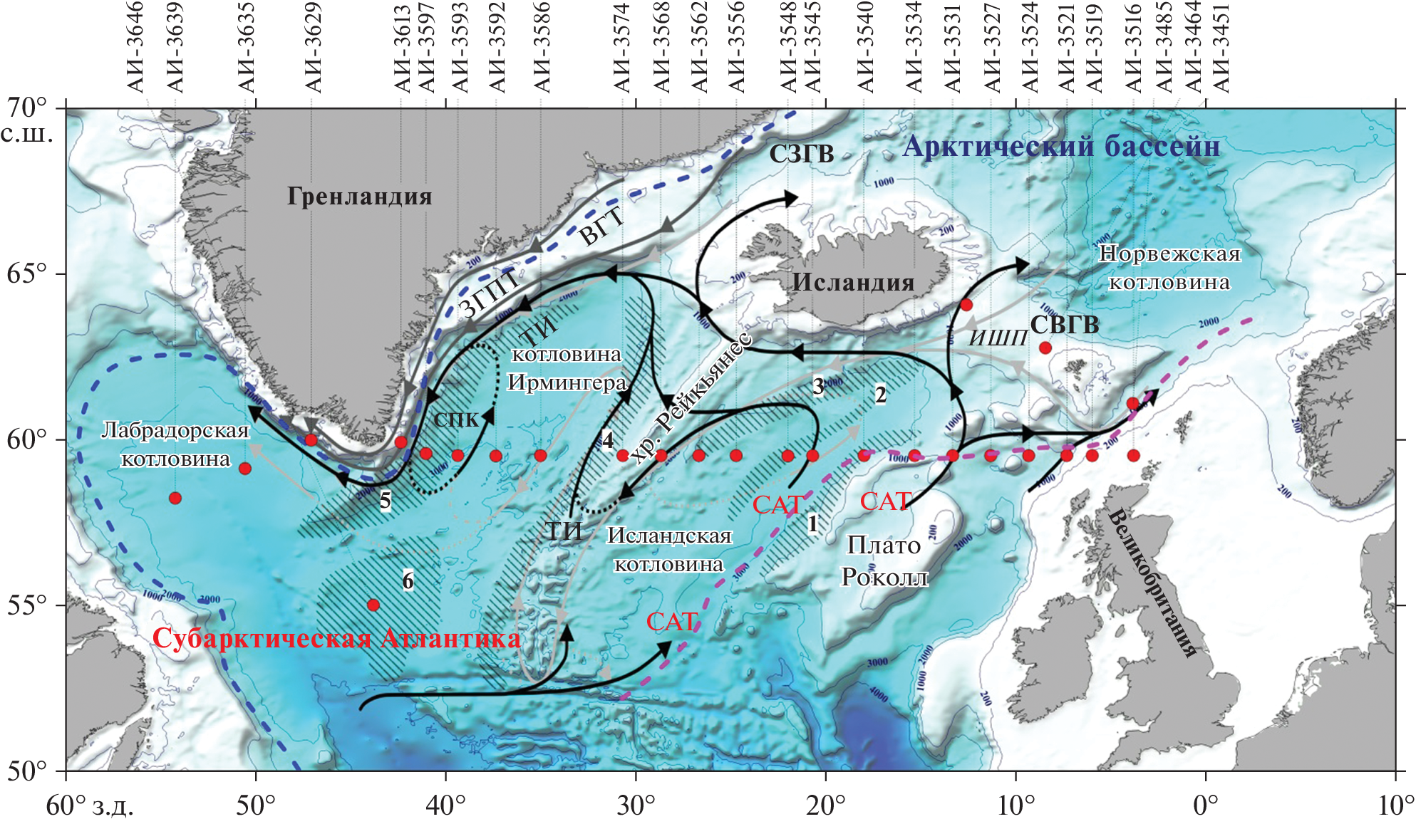 - Daniault N., Mercier H., Lherminier P. et al. The northern North Atlantic Ocean mean circulation in the early 21st century // Progress in Oceanography. 2016. V. 146. P. 142–158. https://doi.org/10.1016/j.pocean.2016.06.007